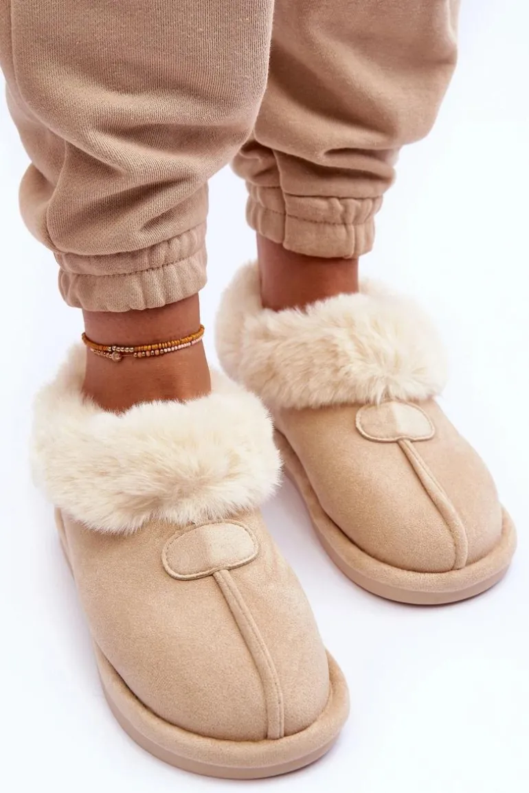 Papcie Damskie Z Futerkiem Jasnobeżowe Lanoze