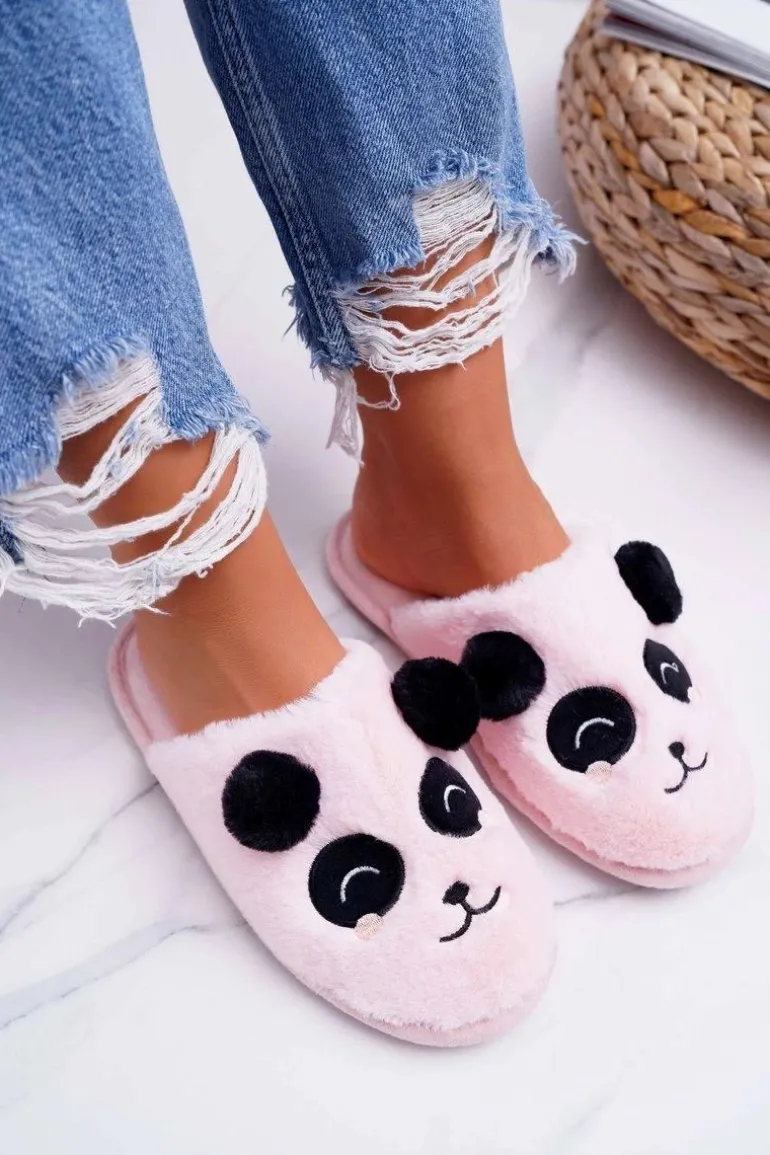 Papcie Damskie Z Futerkiem Pandy Różowe Fimeo