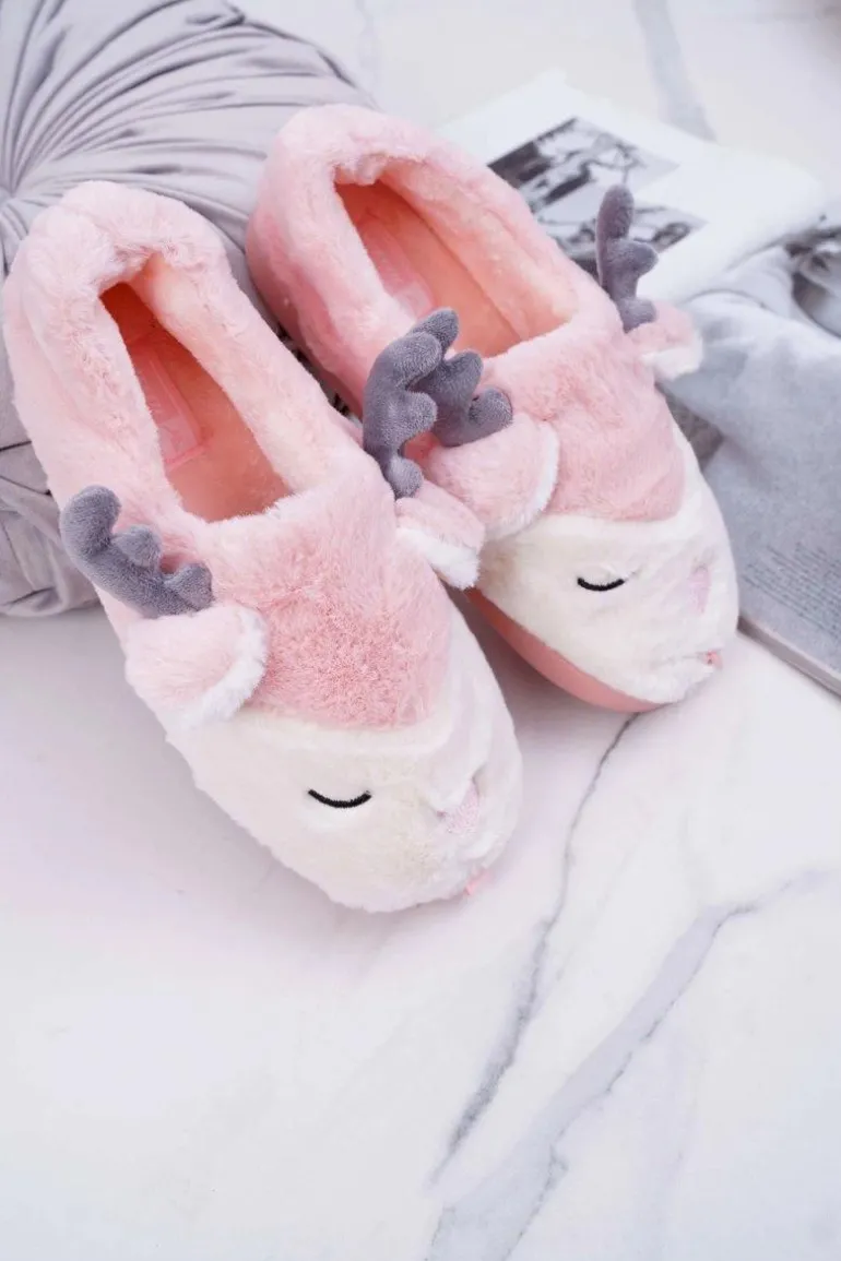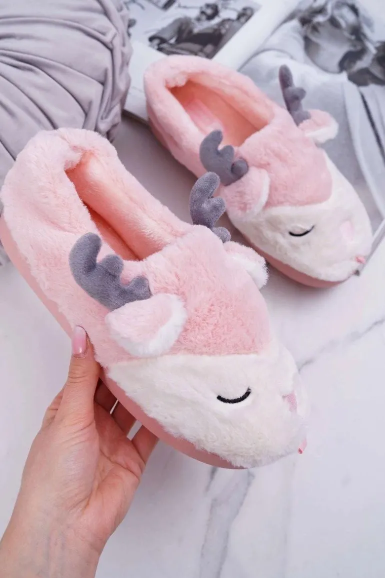 Papcie Damskie Z Futerkiem Renifery Róż Reindeer