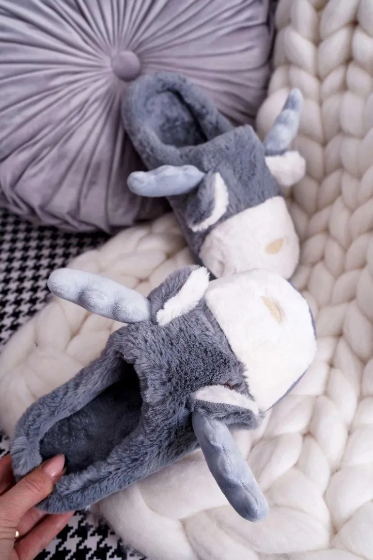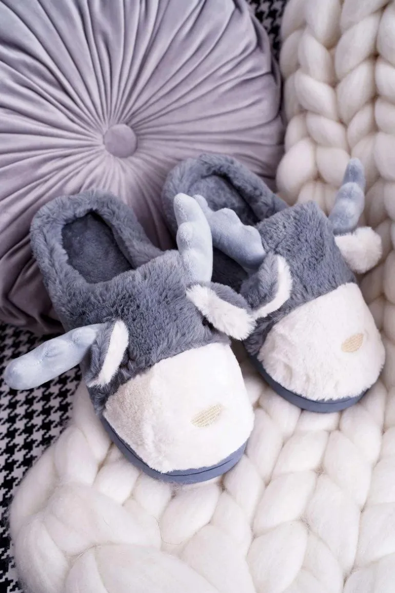 Papcie Damskie Z Futerkiem Renifery Szare Deff