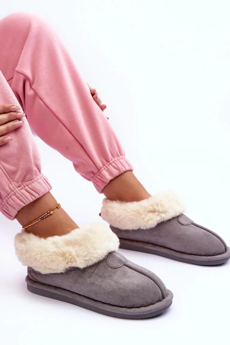 Te wsuwane papcie to idealny wybór na mroźne dni do domowego zacisza! Wykonane z eko zamszu. Ocieplone wewnątrz miłym w dotyku, grubym futerkiem. Miękka wkładka zapewni komfortowe użytkowanie obuwia. Model ten osadzony jest na niskiej platformie i antypoślizgowej podeszwie. Przy wyborze rozmiaru prosimy kierować tabelą rozmiarów.