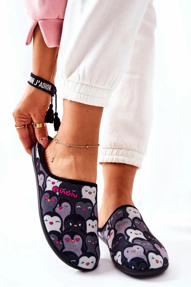 Papcie Klapki Befado Pingwinki 155D202 Czarne