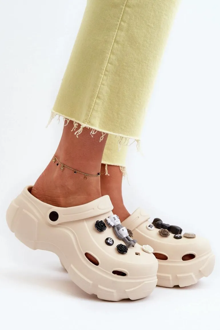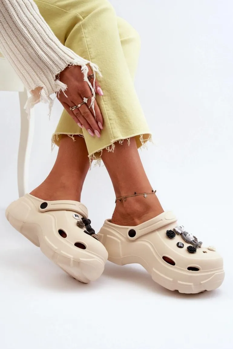 Modne lekkie klapki na masywnej platformie to idealny wybór na letnie dni. Wykonane z pianki, co zapewnia lekkość i wygodę podczas noszenia. Dodatkowo masywna platforma nadaje im modny wygląd, który świetnie komponuje się z letnimi stylizacjami. Doskonałe na spacery czy wypad nad morze. Dodatkowo model ten posiada zestaw przypinek! Przy wyborze rozmiaru prosimy sugerować się tabelą rozmiarów.