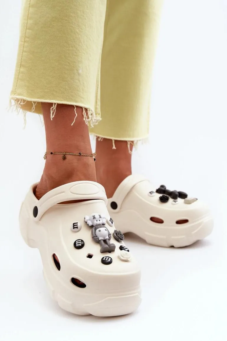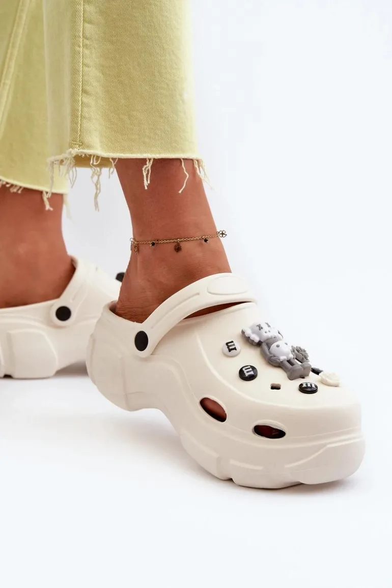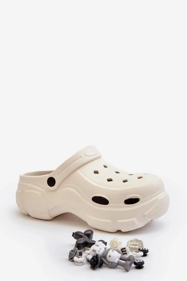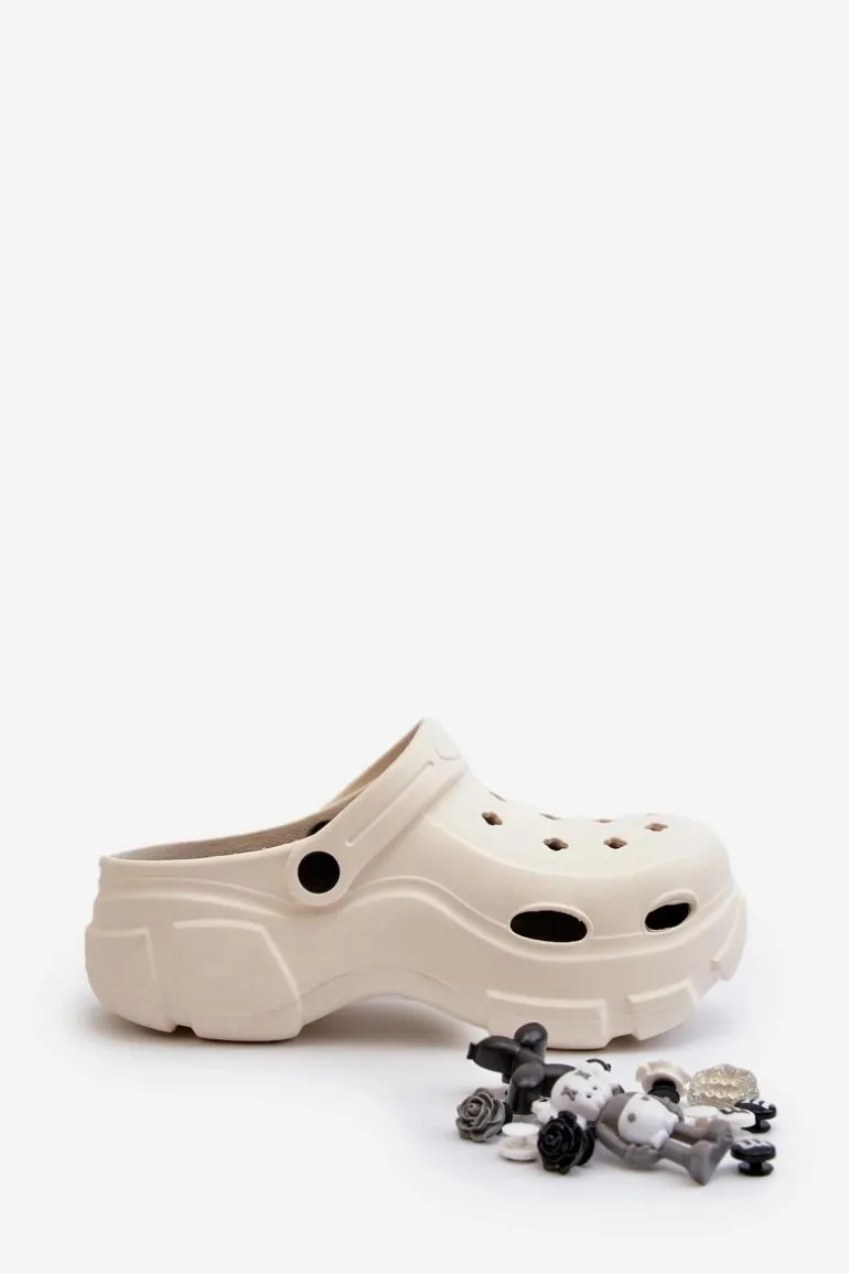 Piankowe Damskie Lekkie Klapki Na Masywnej Podeszwie Białe Matirra