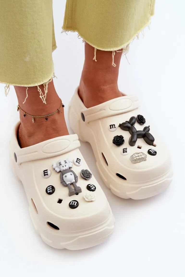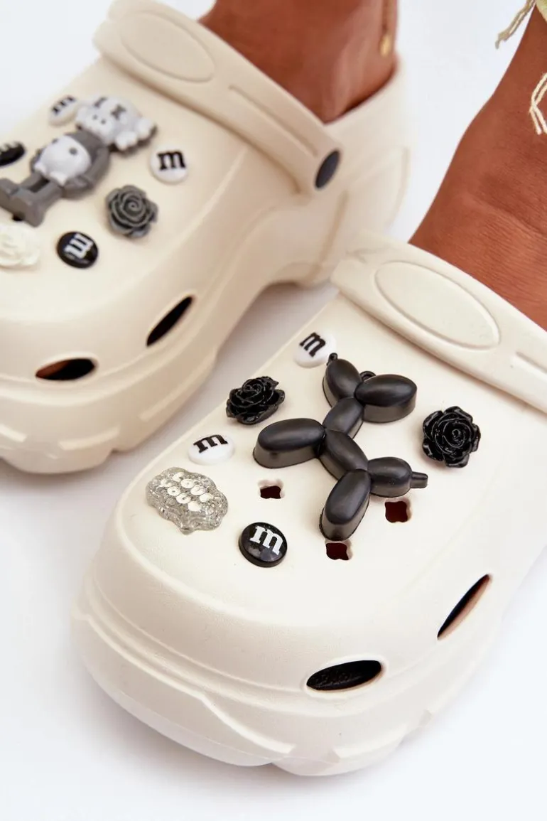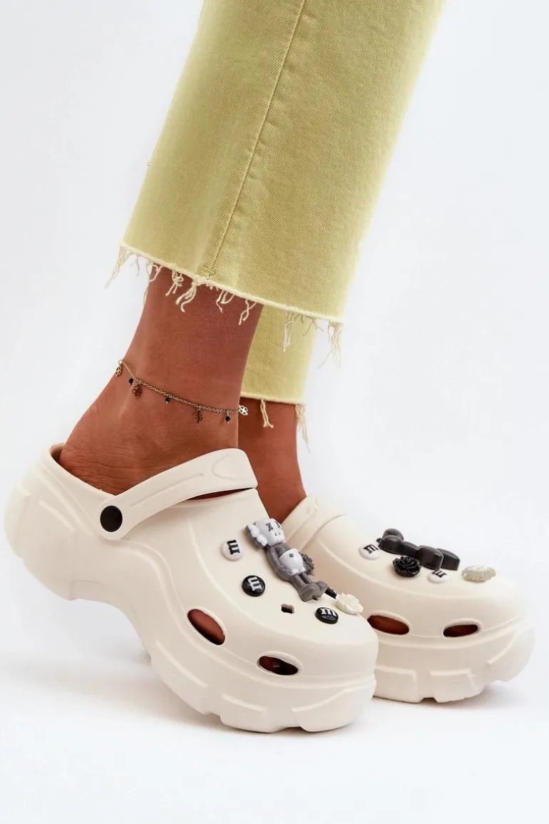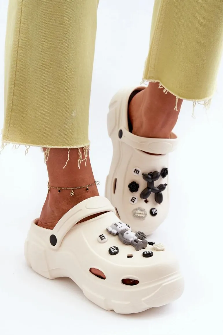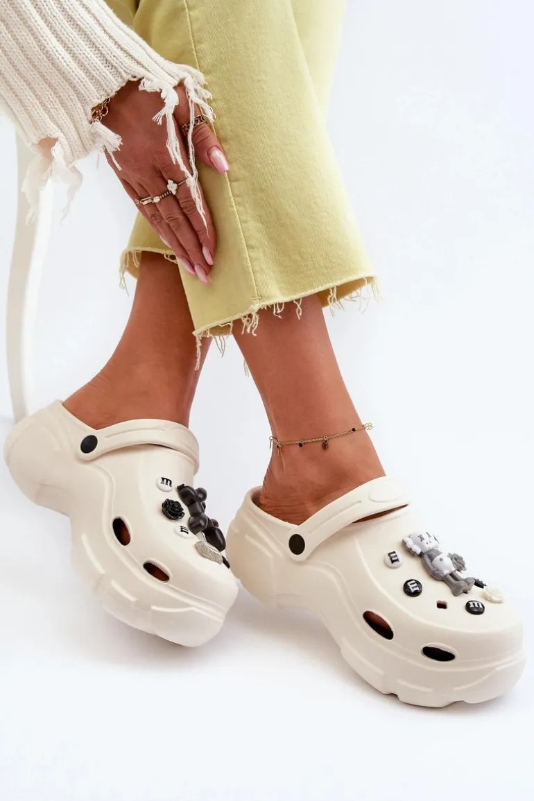Piankowe Damskie Lekkie Klapki Na Masywnej Podeszwie Białe Matirra