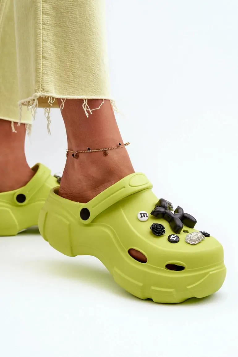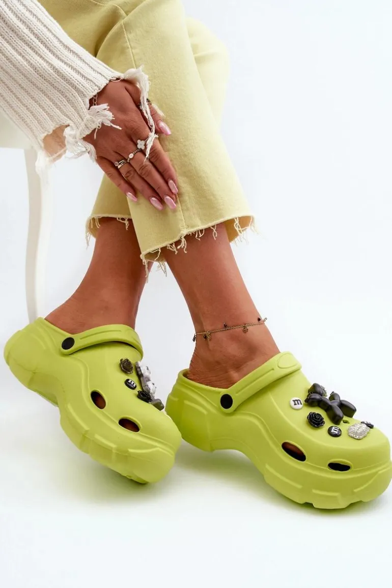 Modne lekkie klapki na masywnej platformie to idealny wybór na letnie dni. Wykonane z pianki, co zapewnia lekkość i wygodę podczas noszenia. Dodatkowo masywna platforma nadaje im modny wygląd, który świetnie komponuje się z letnimi stylizacjami. Doskonałe na spacery czy wypad nad morze. Dodatkowo model ten posiada zestaw przypinek! Przy wyborze rozmiaru prosimy sugerować się tabelą rozmiarów.
