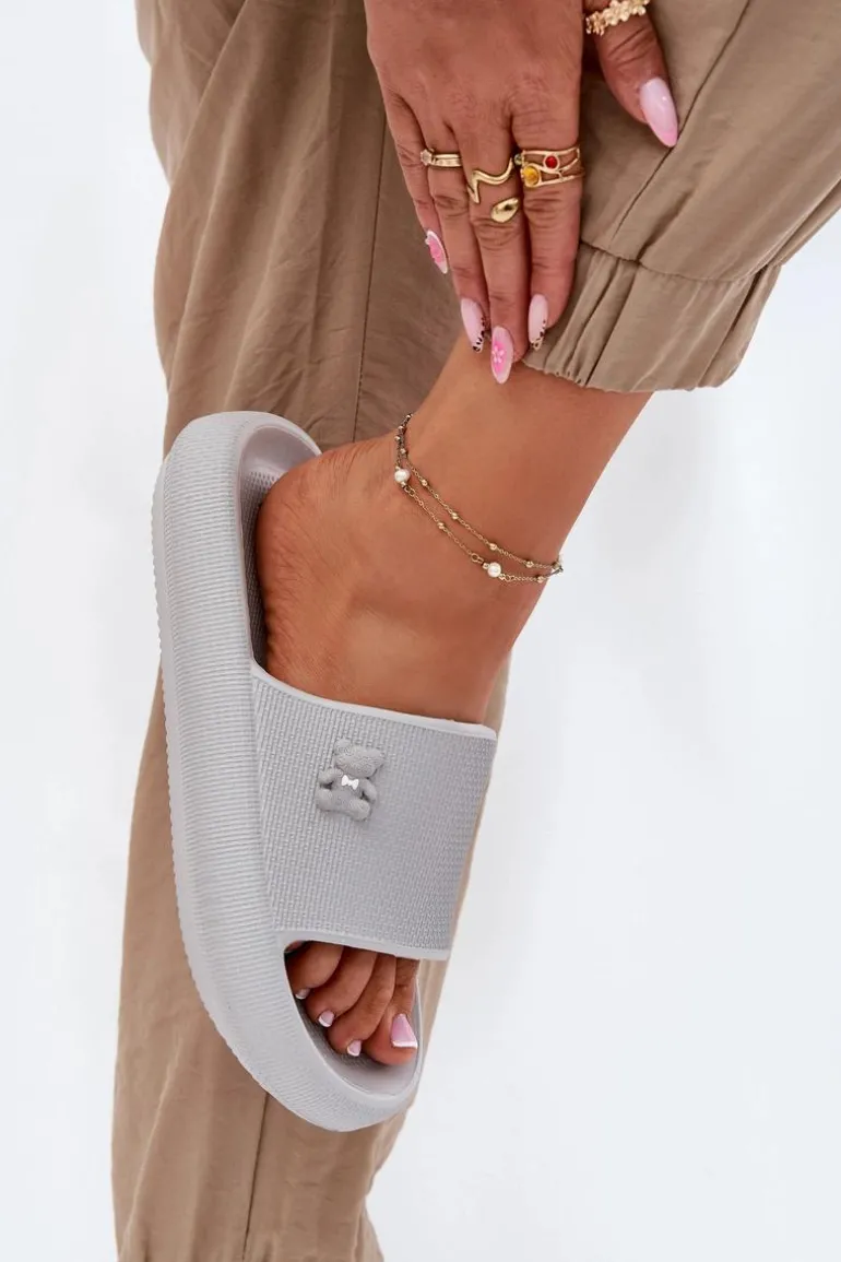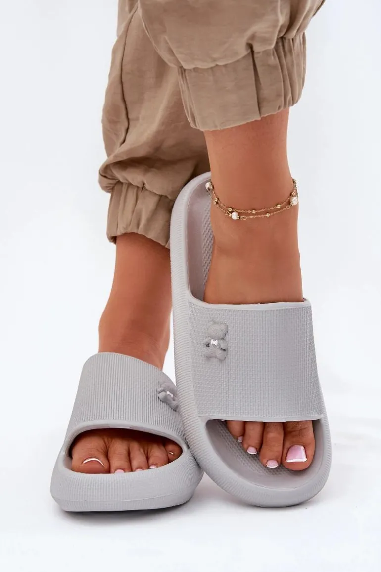 Piankowe Klapki Damskie Na Platformie Z Misiem Vinceza 75210 Szare