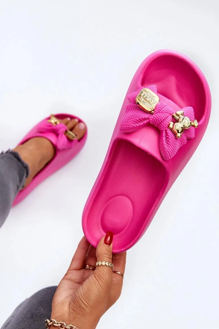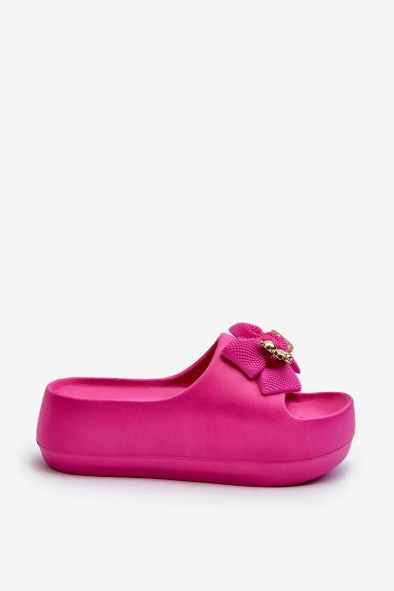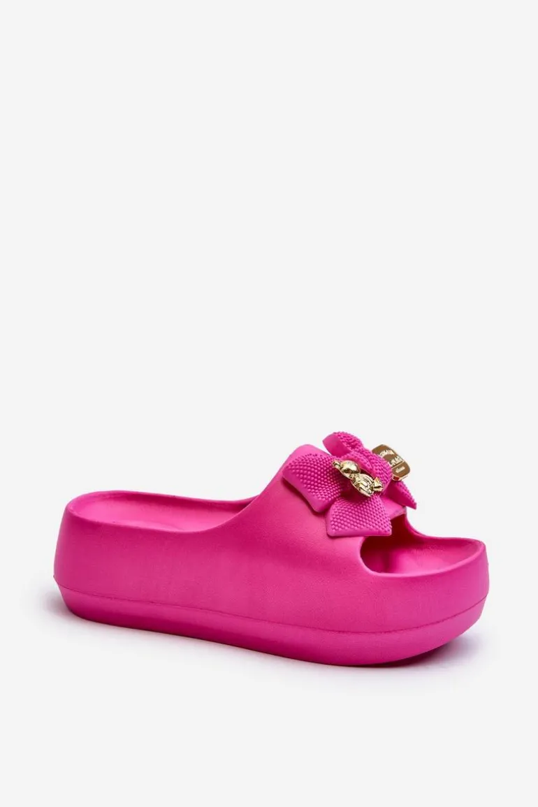 Piankowe Klapki Damskie Z Kokardą Fuksja Salessa