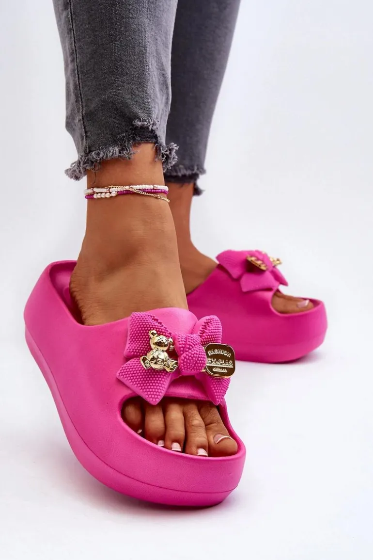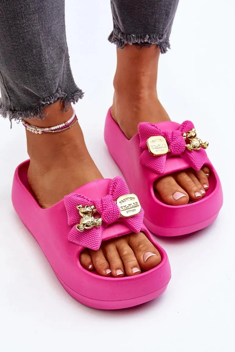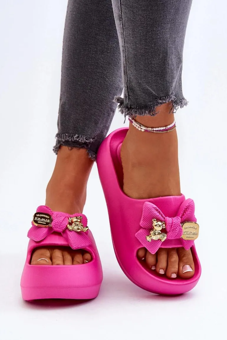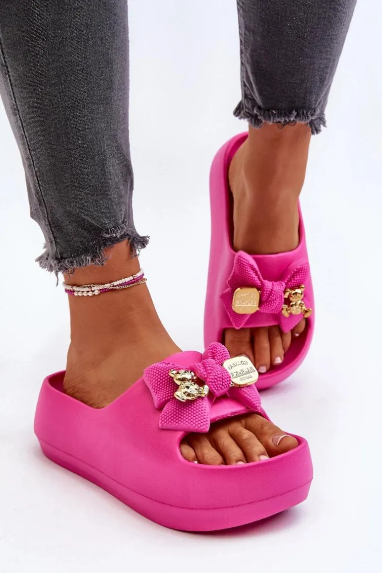 Piankowe Klapki Damskie Z Kokardą Fuksja Salessa