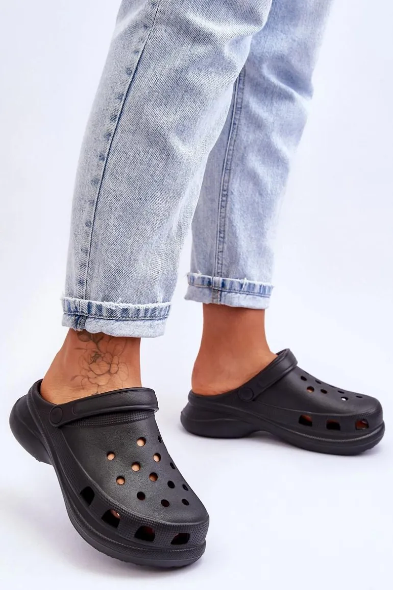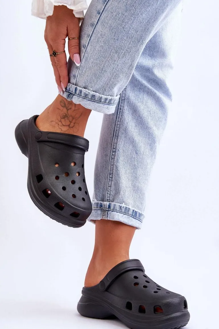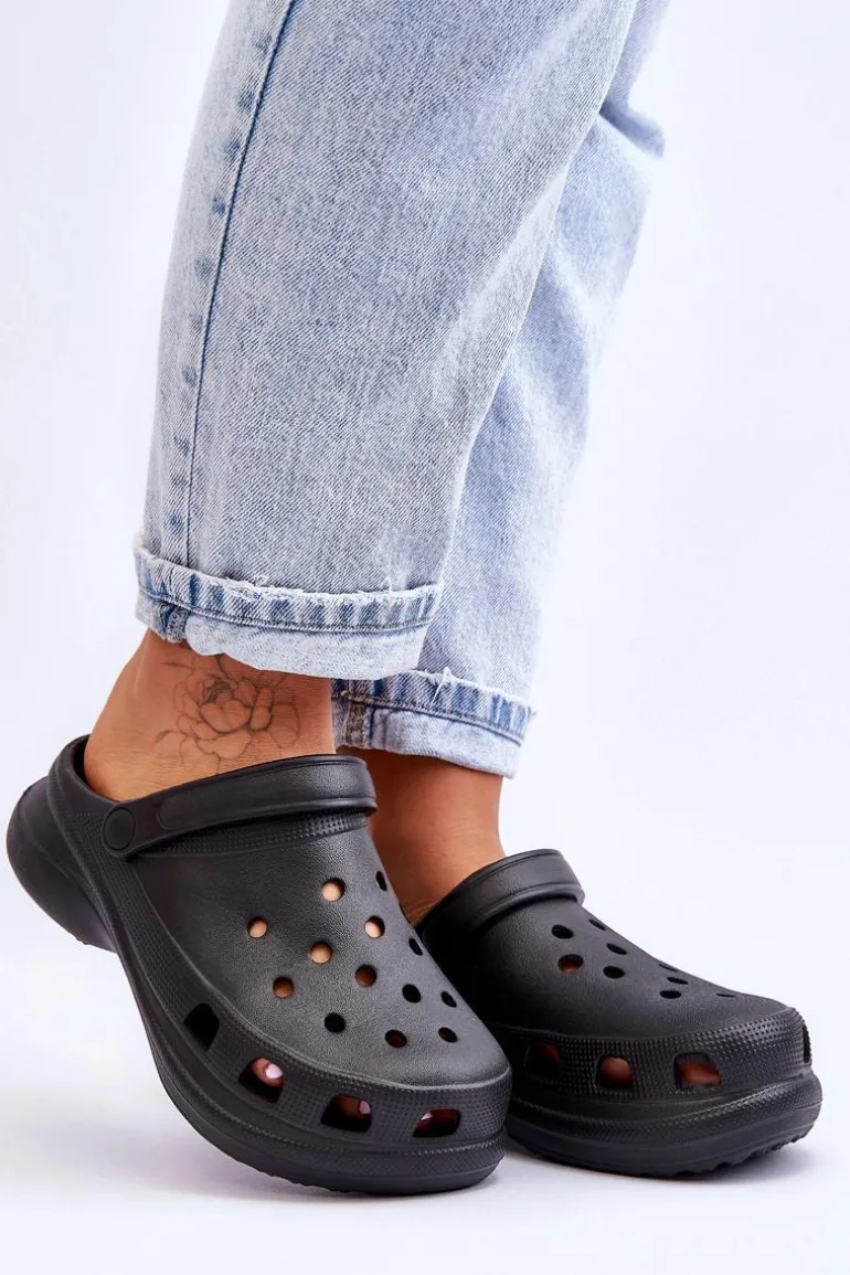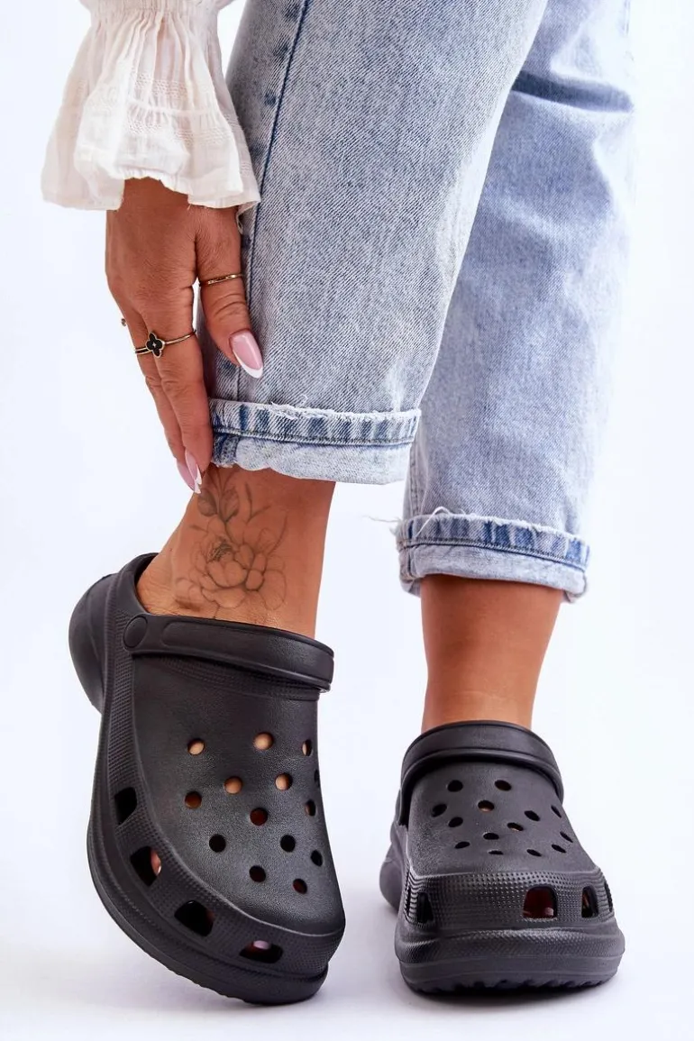 Piankowe Klapki Kroksy Na Masywnej Podeszwie Czarne Katniss