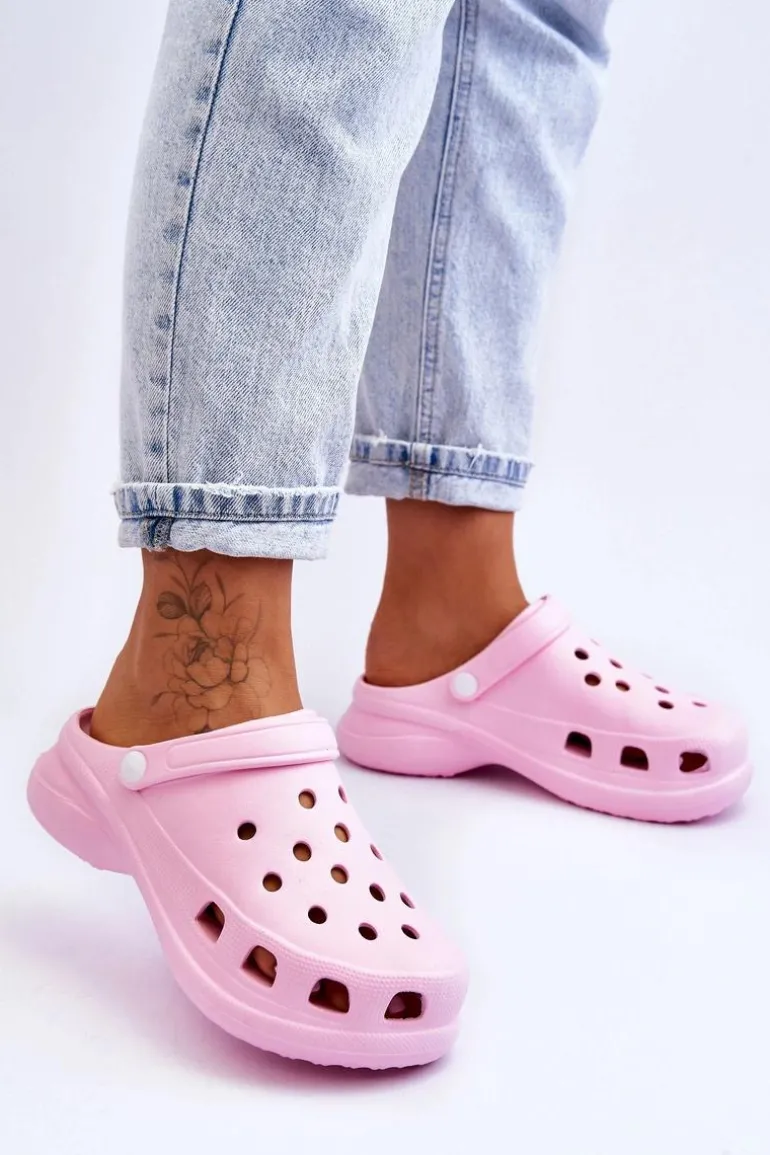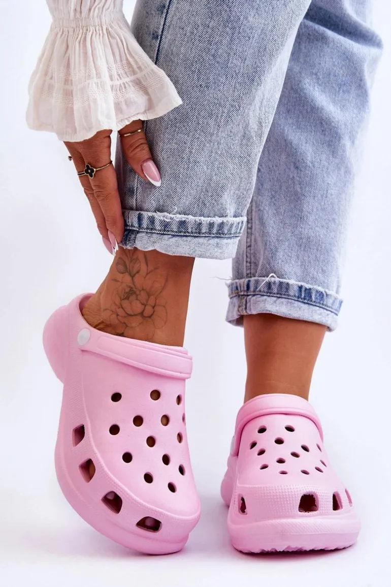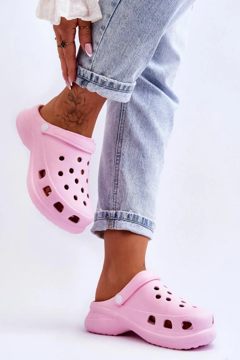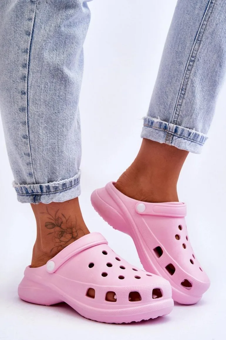 Piankowe Klapki Kroksy Na Masywnej Podeszwie Różowe Katniss