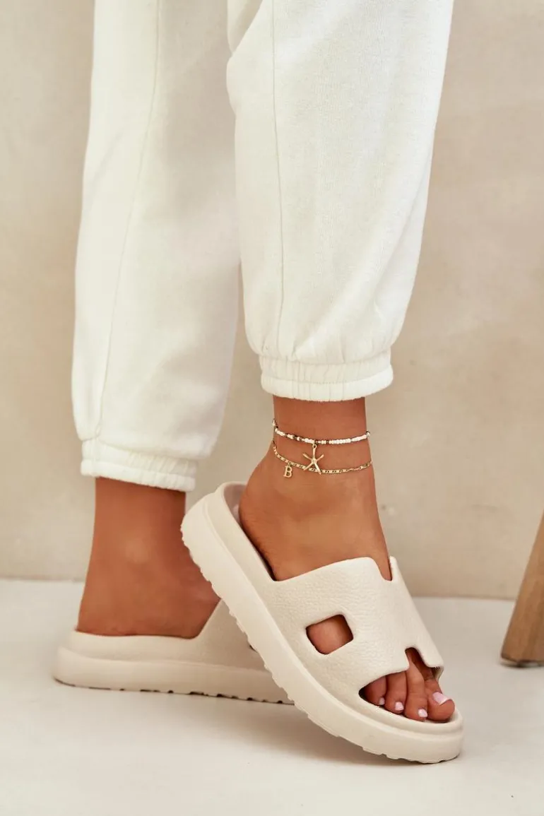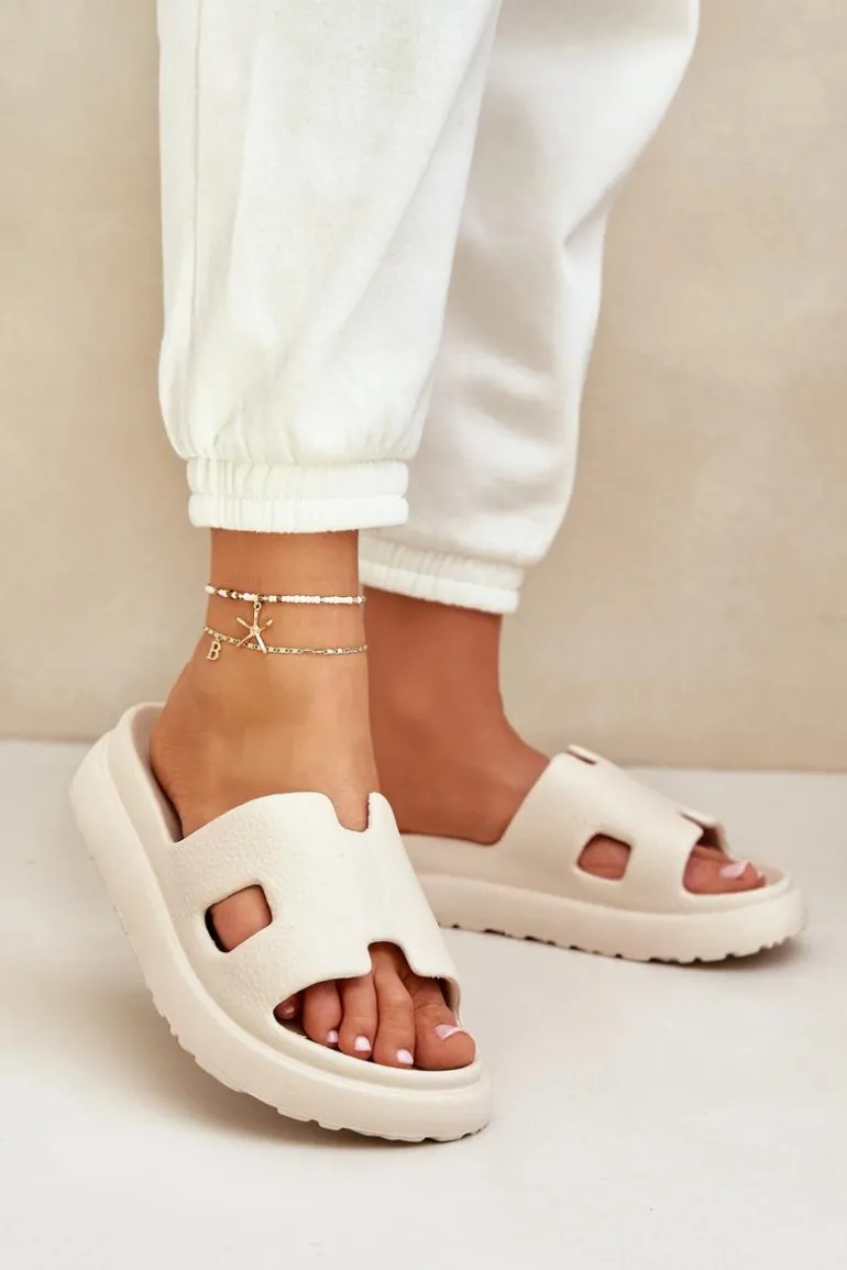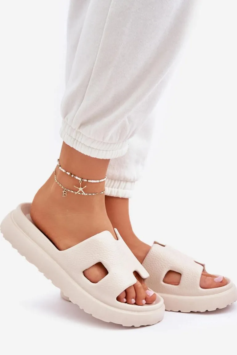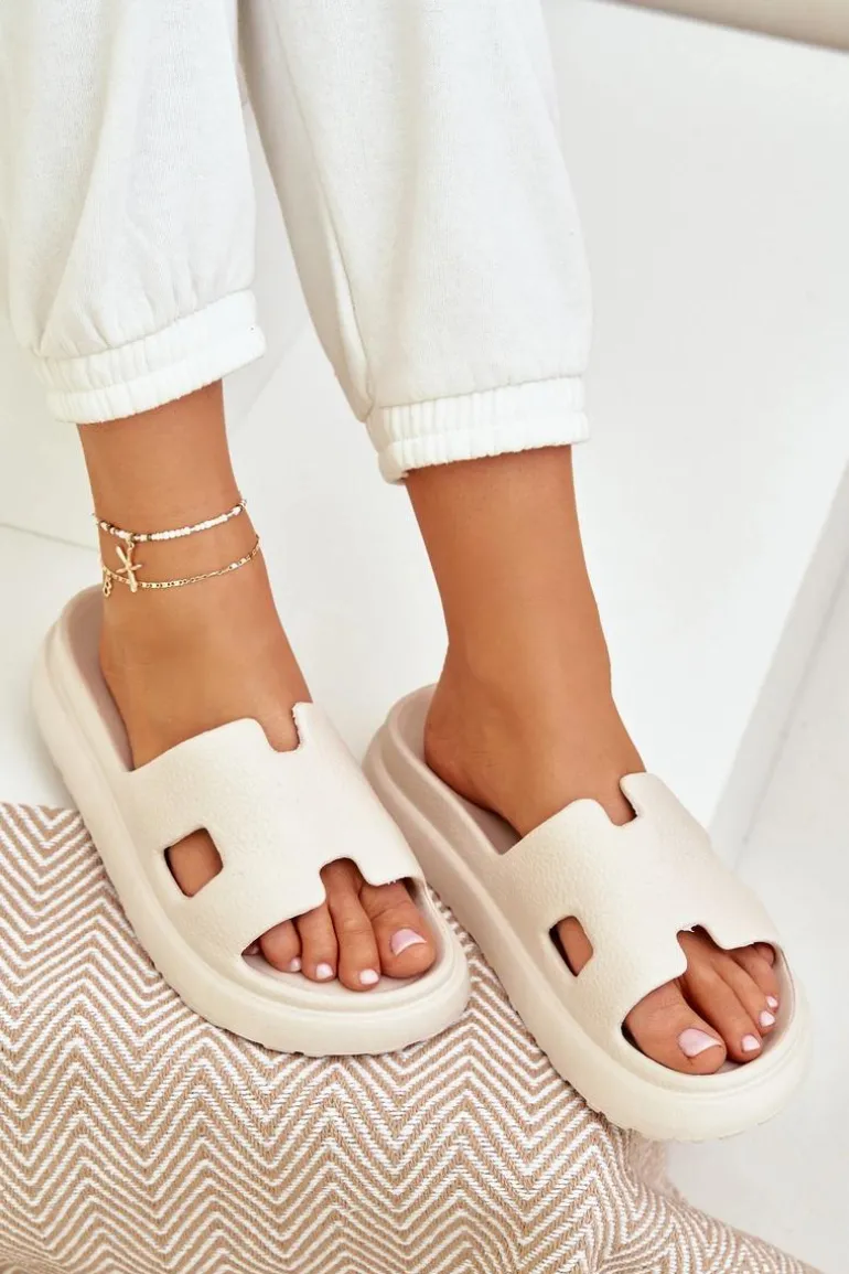 Piankowe Klapki Z Wycięciami Jasnobeżowe Neladith