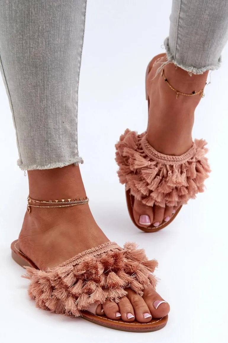 Klapki na płaskim obcasie z frędzlami to doskonały wybór dla kobiet, które szukają stylowego i wygodnego obuwia na letnie dni. Frędzle dodają im oryginalności, a płaski obcas gwarantuje komfort noszenia przez cały dzień. Te klapki będą doskonałym uzupełnieniem letnich stylizacji! Przy wyborze rozmiaru prosimy sugerować się tabelą rozmiarów.
