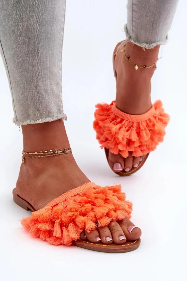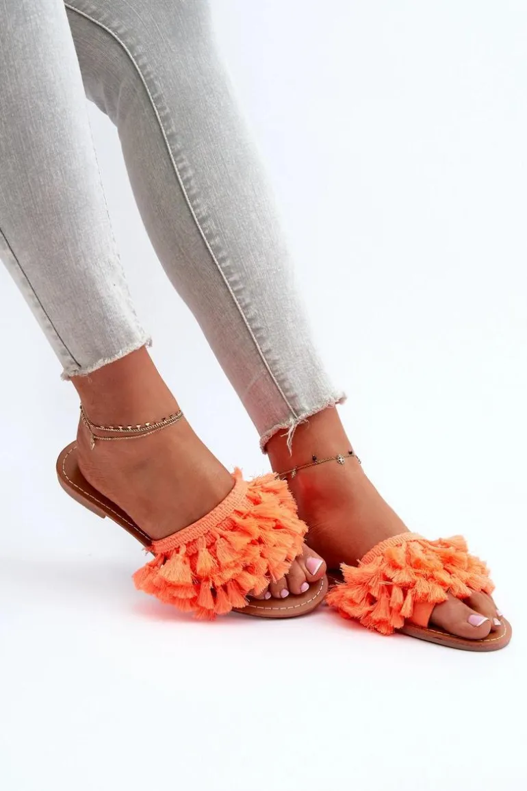 Płaskie Klapki Damskie Z Frędzlami Pomarańczowe Rialle