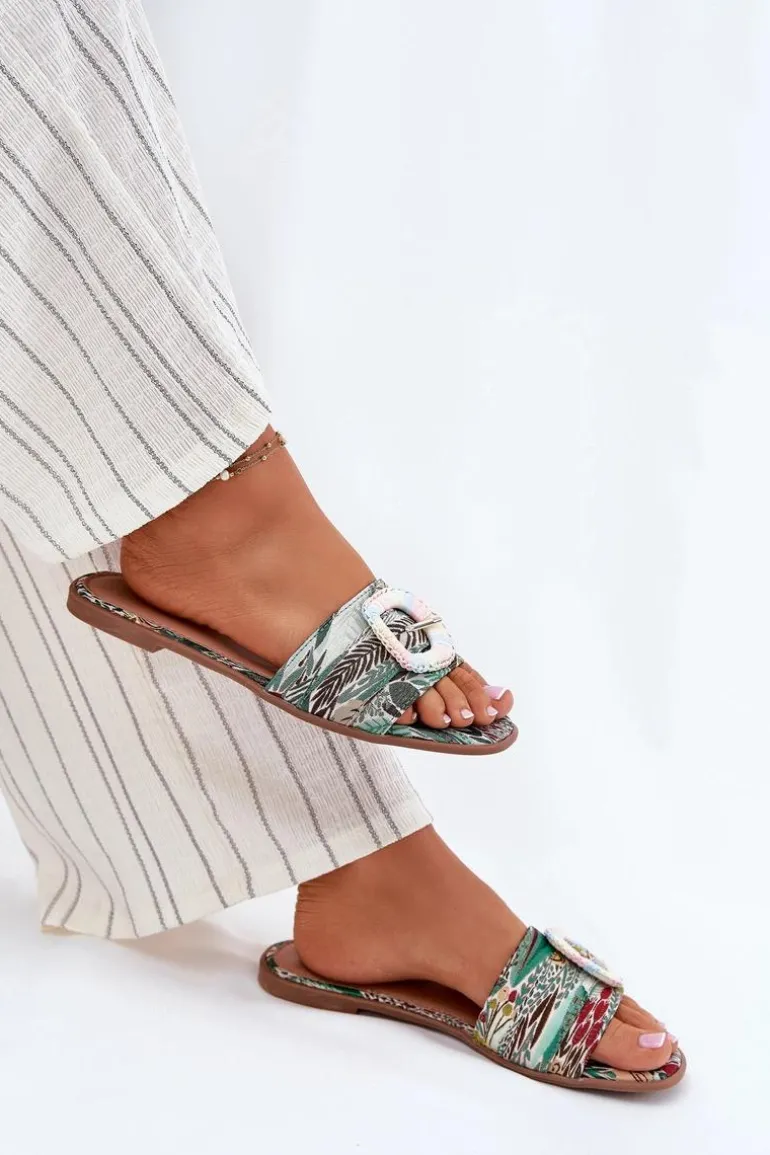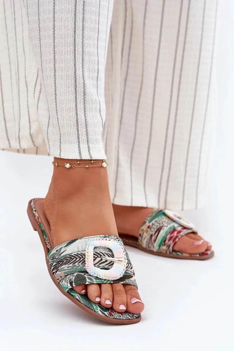 Płaskie Klapki Damskie Z Ozdobną Klamrą Multikolor Clariola