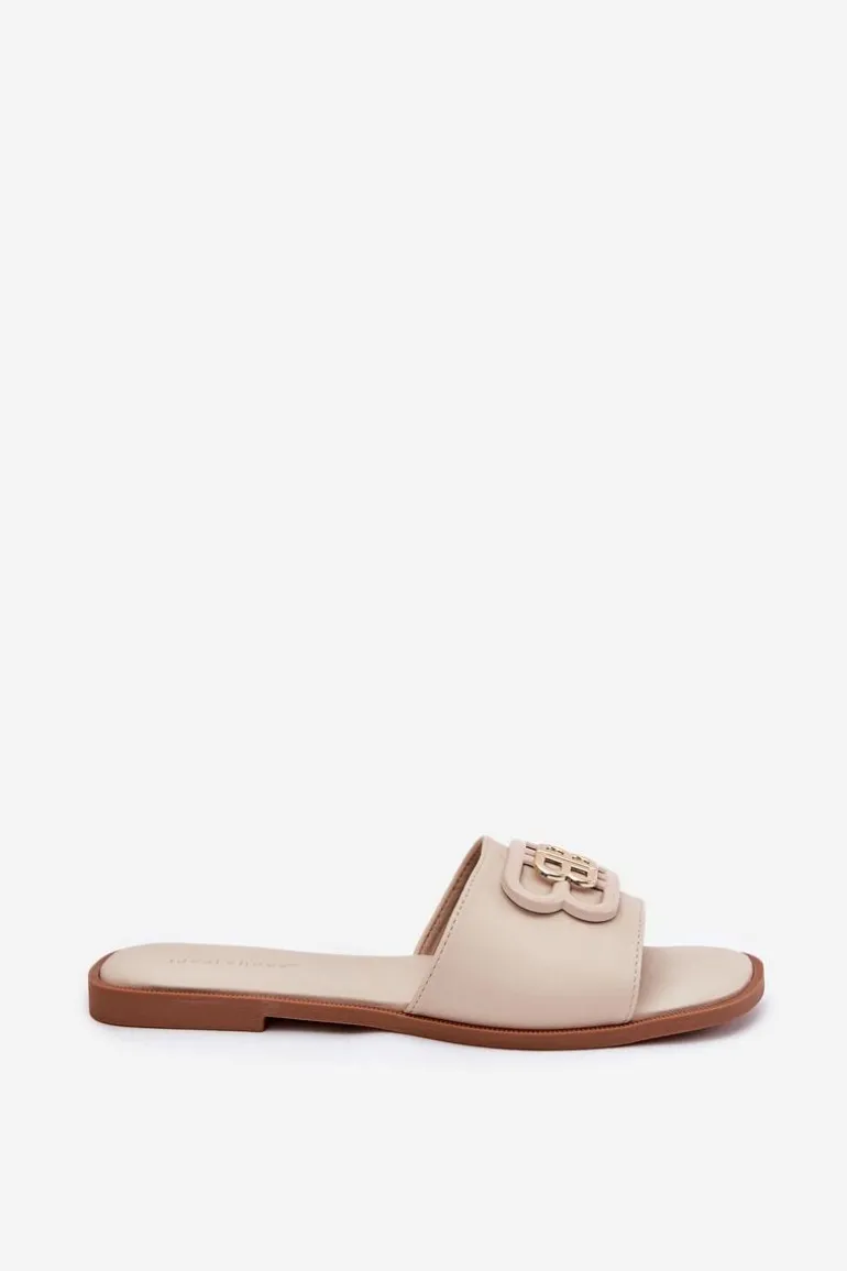 Klapki damskie na płaskim obcasie to wygodna i stylowa opcja na ciepłe dni. Na pasku znajduje się subtelny ozdobny detal, który nadaje im eleganckiego charakteru. Miękka eko skórzana wkładka zapewnia komfort przez cały dzień. Doskonałe do sukienek oraz spodni materiałowych, te klapki łączą funkcjonalność z modnym wyglądem, idealne na codzienne wyjścia. Przy wyborze rozmiaru prosimy sugerować się tabelą rozmiarów.