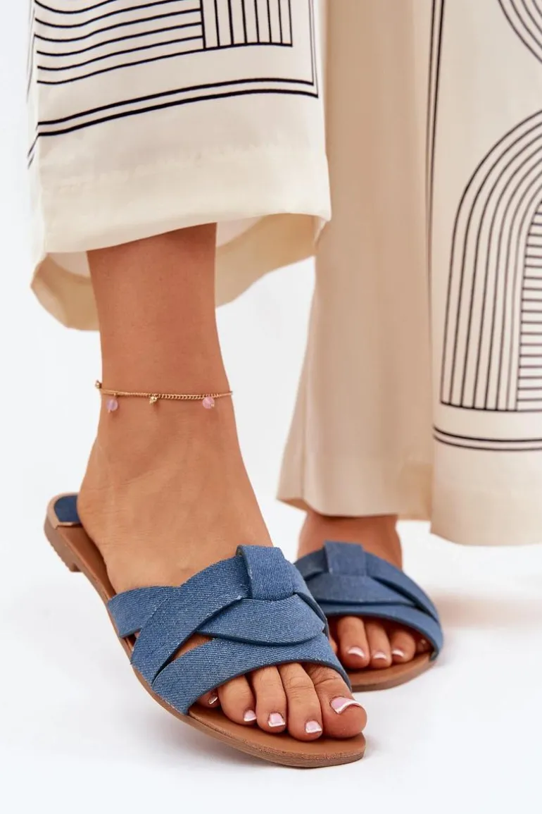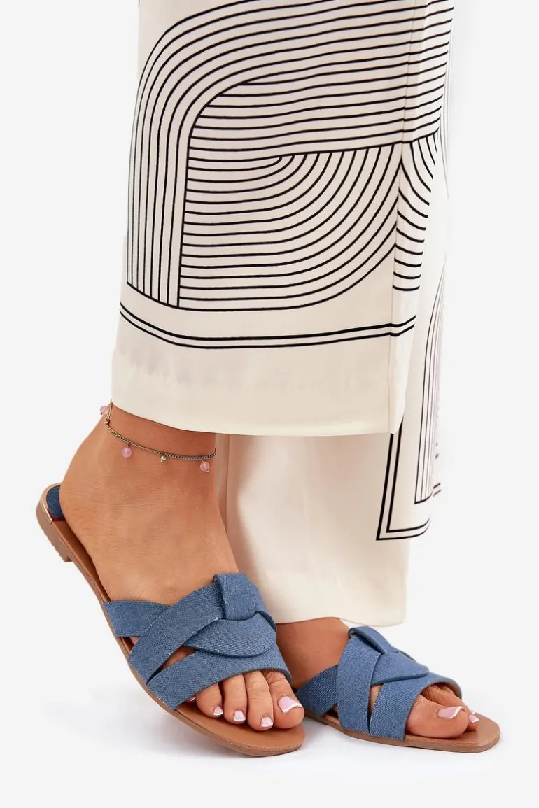 Płaskie klapki damskie z materiału tekstylnego, które charakteryzują się przeplatającymi się paskami z przodu, nadającymi im delikatnego uroku. Klasyczny fason sprawia, że będą doskonałym wyborem do wielu stylizacji, łącząc wygodę z prostym, eleganckim wyglądem. Przy wyborze rozmiaru prosimy sugerować się tabelą rozmiarów.