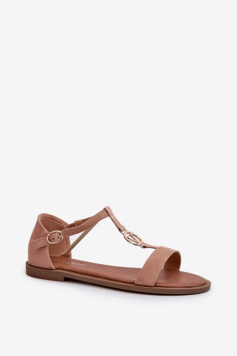 Damskie sandały od marki Vinceza. Wykonane z wysokiej jakości eko zamszu. Złota ozdoba dodaje im subtelnej elegancji. Zapinane na regulowany pasek ze sprzączką, gwarantują idealne dopasowanie do stopy. Zakryta pięta zapewnia stabilność i wygodę, idealną na długie spacery czy letnie wyjścia. Te sandały doskonale sprawdzą się w różnych stylizacjach! Przy wyborze rozmiaru prosimy kierować się tabelą rozmiarów.