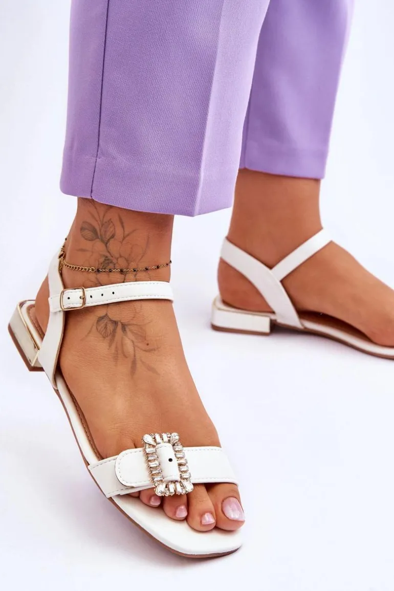 Płaskie Sandały Na Złotym Obcasie Białe Mindley