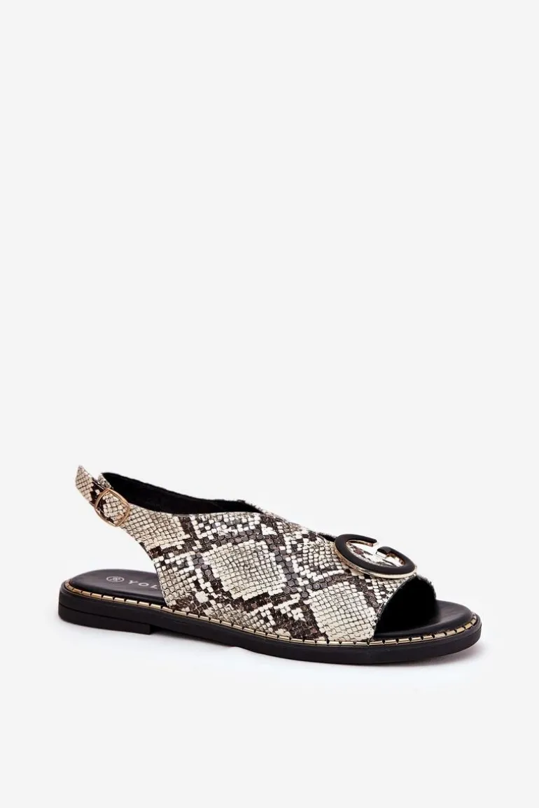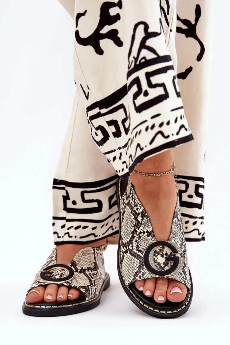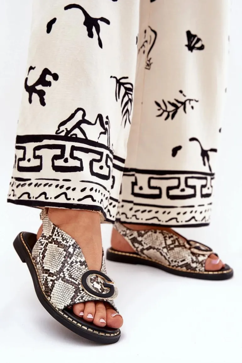 Płaskie Sandały Z Ozdobą Wężowy Wzór Beżowo-Brązowe Haliones
