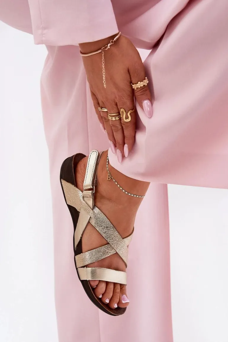 Damskie sandały z naturalnej skóry to doskonały wybór na ciepłe dni. Osadzone na płaskim obcasie, zapewniają wygodę i komfort przez cały dzień. Model zapinany na rzep, z trzema paskami z przodu, łączy klasyczny styl z elegancją. Te sandały będą idealnym dopełnieniem letnich stylizacji, doskonale komponując się zarówno z sukienkami, jak i spodniami.Przy wyborze rozmiaru prosimy kierować się tabelą rozmiarów.