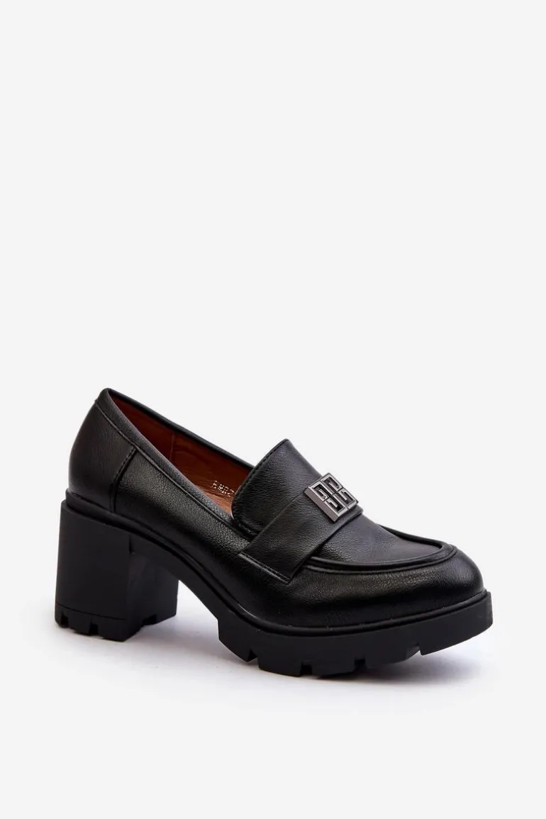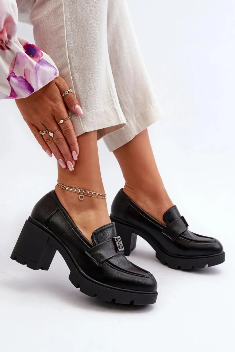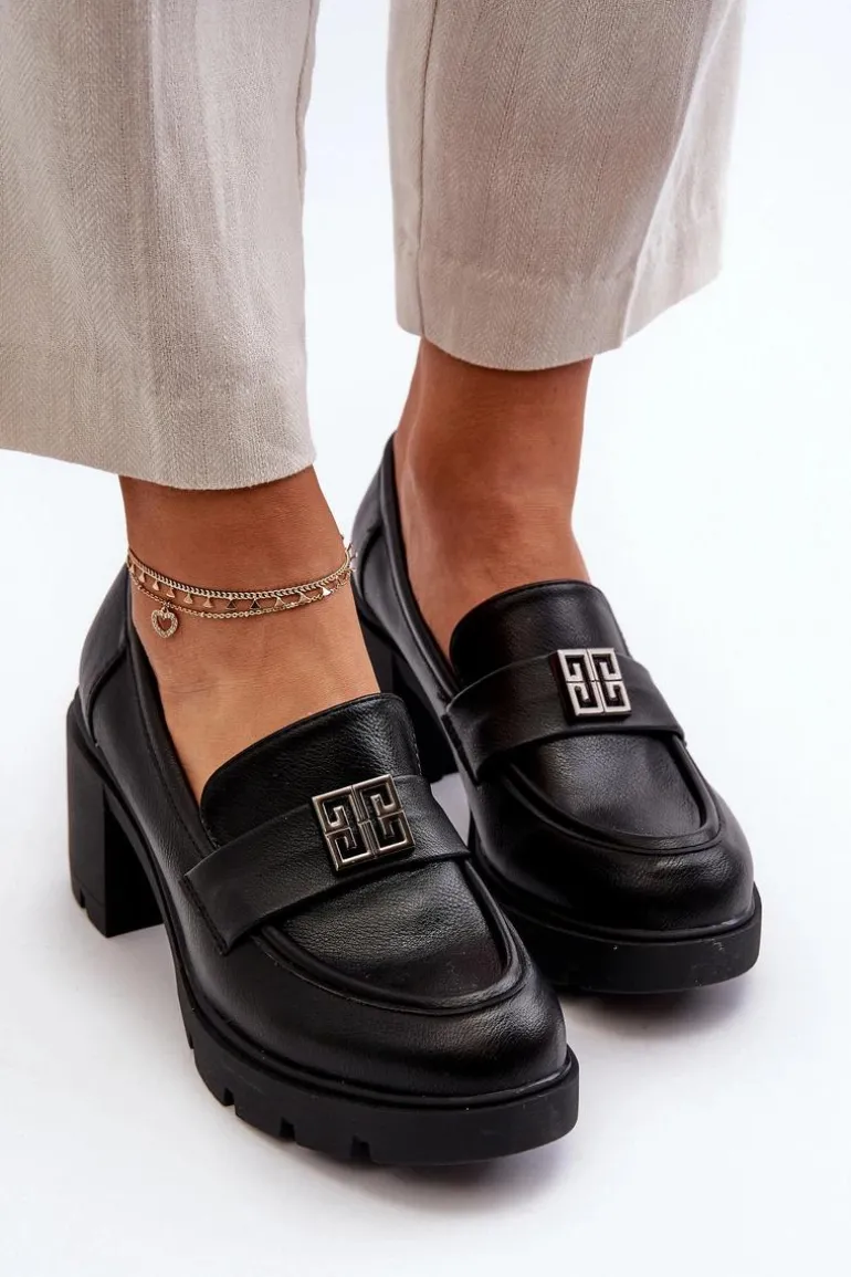 Półbuty Damskie Na Masywnym Obcasie Z Ozdobą Czarne Ranunca