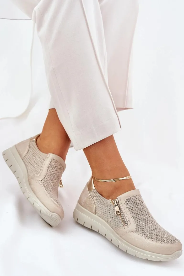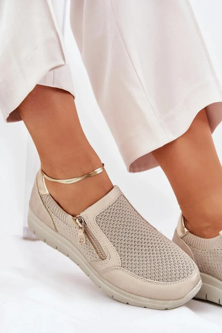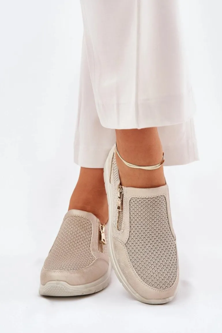 Półbuty Damskie Na Platformie Z Zamkiem Złote Leanae