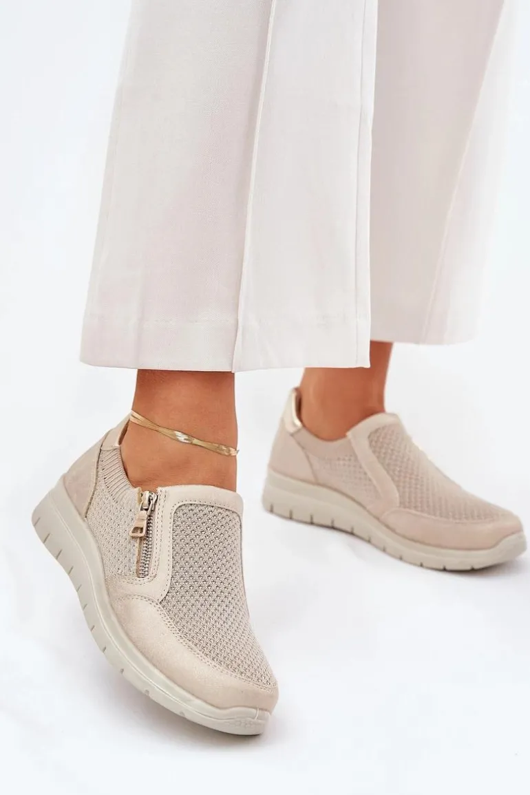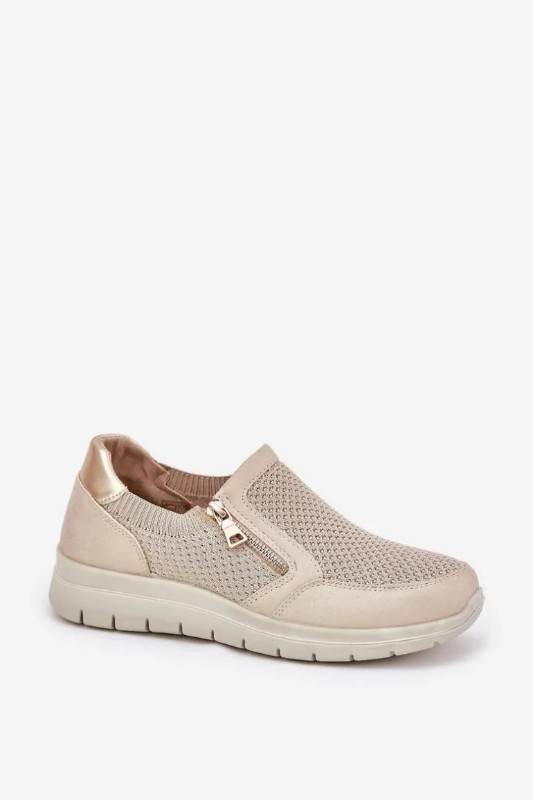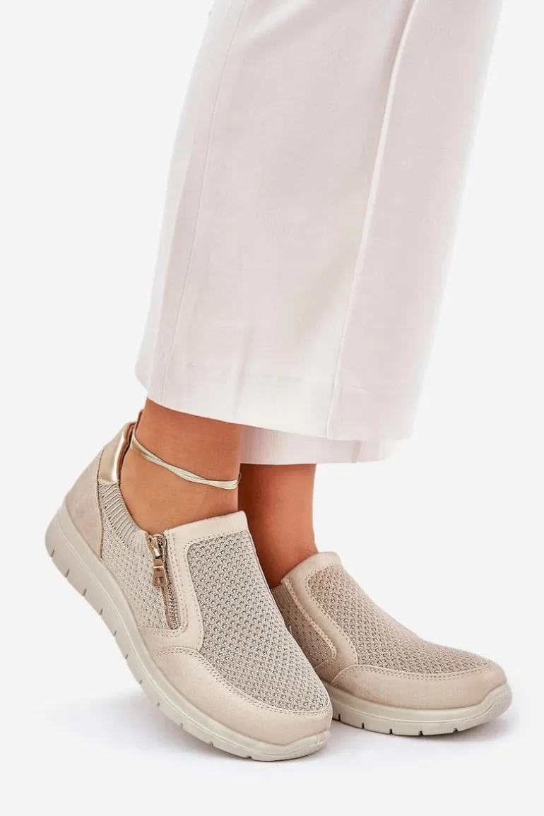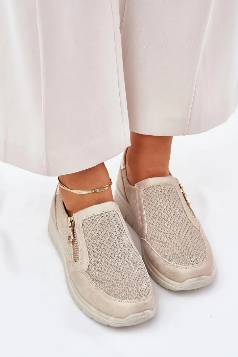 Półbuty Damskie Na Platformie Z Zamkiem Złote Leanae