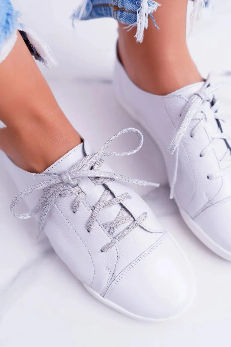 Półbuty Damskie Tenisówki Maciejka Skórzane Białe 4049A