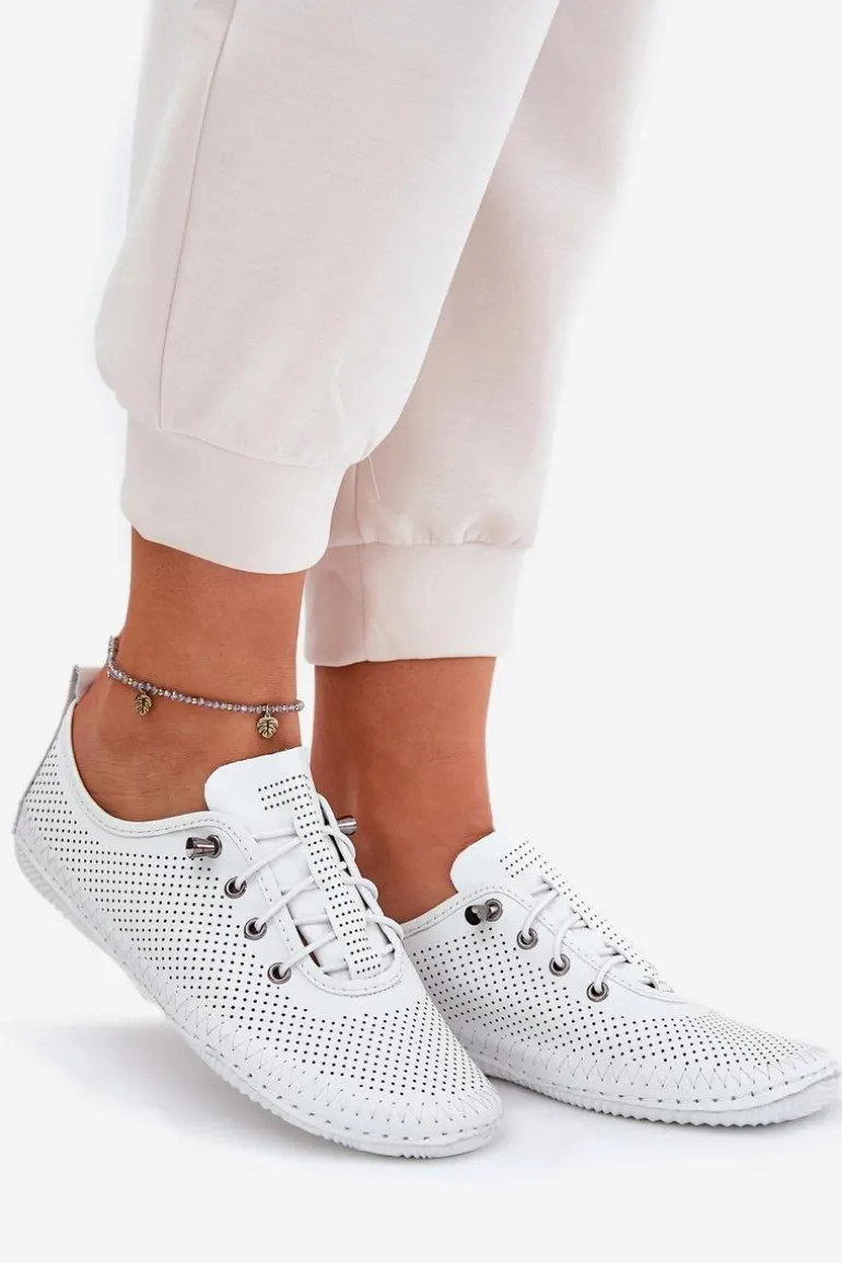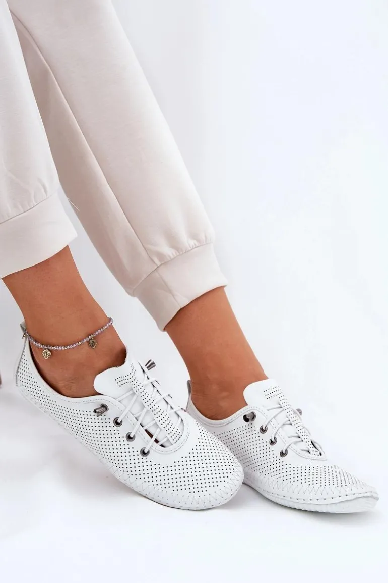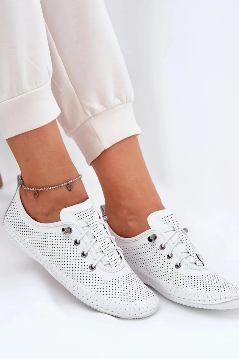 Damskie półbuty z naturalnej skóry, które łączą komfort z funkcjonalnością. Elastyczne gumki imitujące sznurówki ułatwiają zakładanie i gwarantują idealne dopasowanie do stopy. Szerokie, zaokrąglone noski zapewniają wygodę przez cały dzień, a skórzana wkładka zapewnia odpowiednią amortyzację. To świetny wybór do codziennych stylizacji, oferujący zarówno styl, jak i komfort. Przy wyborze rozmiaru prosimy sugerować się tabelą rozmiarów.