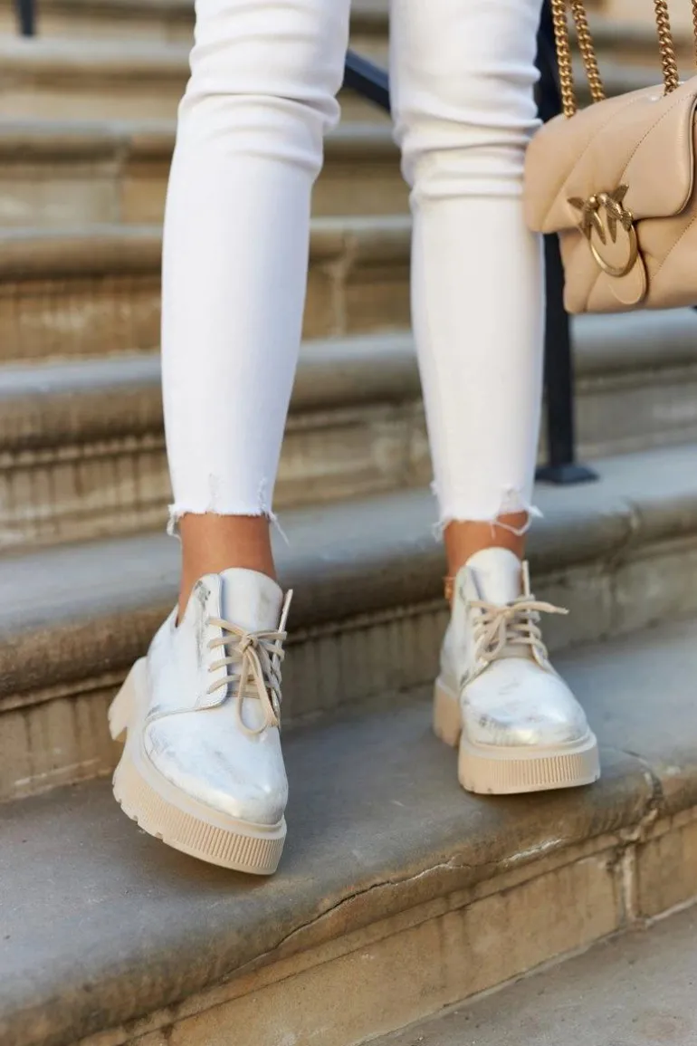 Piękne półbuty marki Nicole. Wykonane są ze skóry naturalnej. Klasyczna forma pasuje do wielu stylizacji. Buty dobrze dopasowują się do kształtu stopy, posiadają miękką wkładkę ze skóry naturalnej. Klasyczny, wiązany model. Posiadają usztywniany zapiętek. Masywna podeszwa świetnie będzie izolować od zimna. Przy wyborze rozmiaru prosimy sugerować się tabelą rozmiarów.