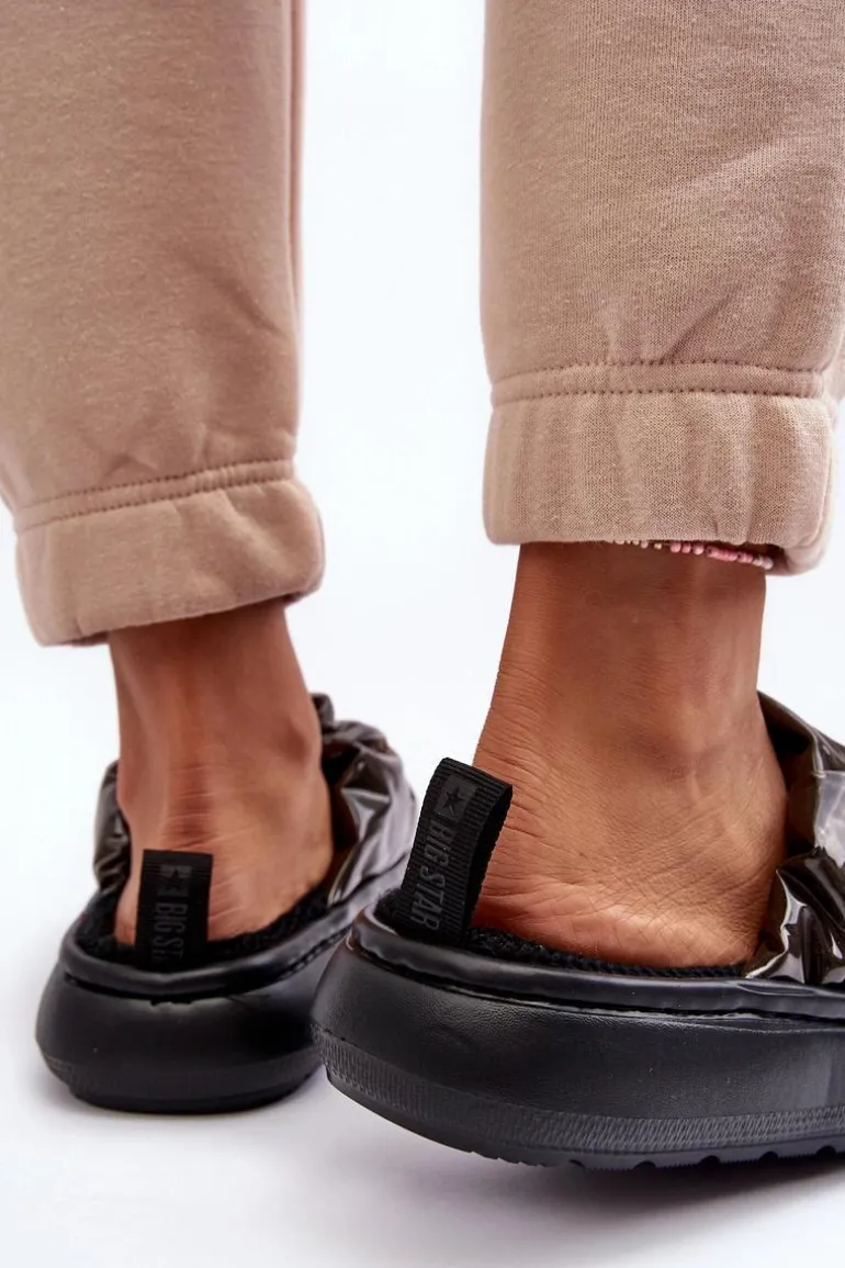 Modne kapcie damskie marki Big Star osadzone na grubej podeszwie. Model klasyczny, wsuwany. Środek ocieplony futerkiem. Cholewka marszczona. Ten model powinien znaleźć się w Twojej szafie! Doskonale sprawdzą się jako obuwie domowe w chłodniejsze dni! Przy wyborze rozmiaru prosimy sugerować się tabelą rozmiarów.