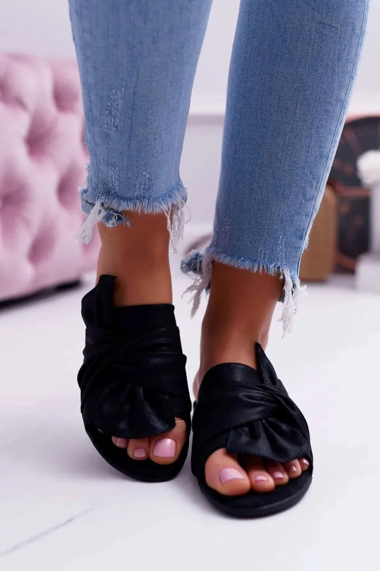 Piękne klapki damskie wykonane z eko skóry. Buty posiadają antypoślizgową, gumową podeszwę. Przy wyborze rozmiaru prosimy sugerować się tabelą rozmiarów.