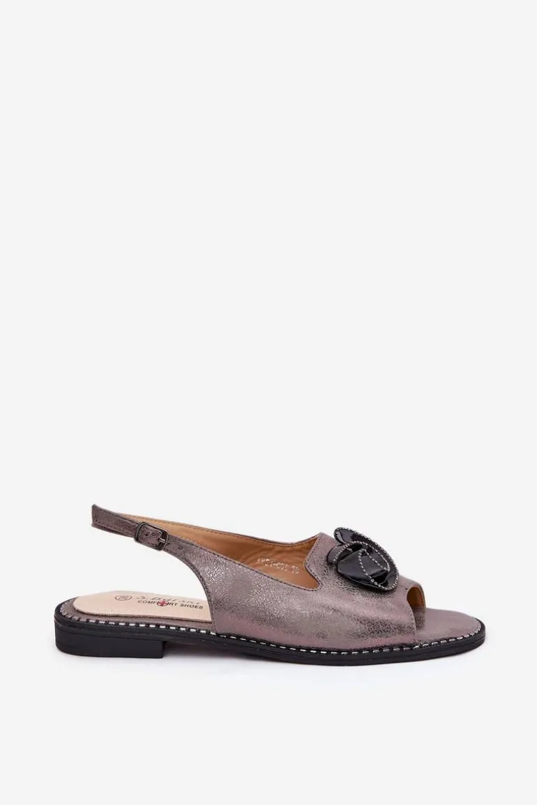 Połyskujące sandały damskie marki S.Barski, wykonane z eko skóry, które łączą elegancję z komfortem. Osadzone na płaskim obcasie, zapewniają wygodę przez cały dzień. Zapinane na sprzączkę z regulowanym paskiem, pozwalają na idealne dopasowanie do stopy. Z przodu ozdoba, która nadaje butom subtelnego uroku. Wkładka Comfort Shoes gwarantuje wygodę i odpowiednią amortyzację. Te eleganckie sandały będą doskonałym wyborem na letnie wyjścia i formalne okazje. Przy wyborze rozmiaru prosimy kierować się tabelą rozmiarów.