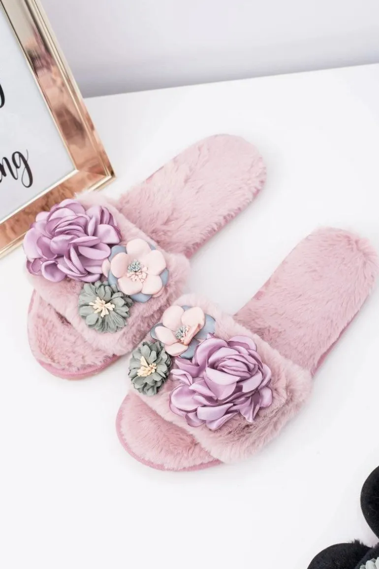 Różowe Klapki Damskie Z Kwiatkami Lu Boo Bouquet