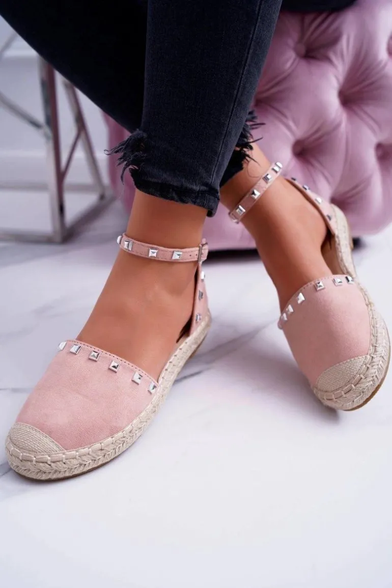 Różowe Zamszowe Espadryle Balerinki z Ćwiekami Tatiana