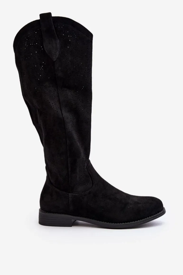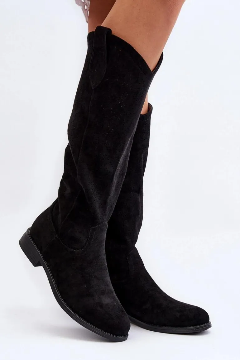Ażurowe kozaki damskie idealnie dopełnią niemalże każdą codzienną stylizację! Wykonane z eko zamszu. Osadzone na płaskim, stabilnym obcasie. Noski zaokrąglone. Cholewka przed kolano, zapinana na zamek. Dodatkowo model ten posiada usztywniany zapiętek. Koniecznie powinnaś je mieć! Przy wyborze rozmiaru prosimy sugerować się tabelą rozmiarów.