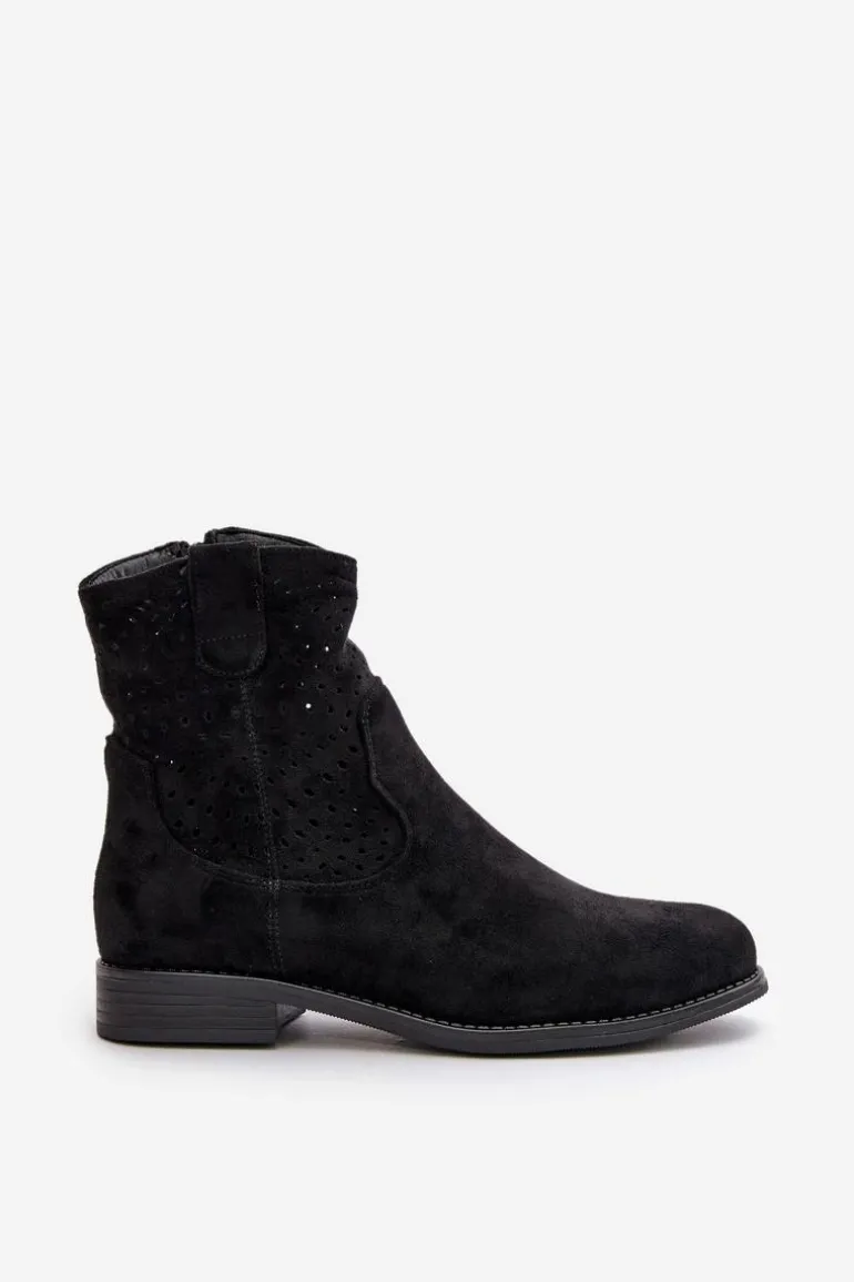 Ażurowe botki damskie idealnie dopełnią niemalże każdą codzienną stylizację! Wykonane z eko zamszu. Osadzone na płaskim, stabilnym obcasie. Noski zaokrąglone. Cholewka przed kolano, zapinana na zamek. Dodatkowo model ten posiada usztywniany zapiętek. Koniecznie powinnaś je mieć! Przy wyborze rozmiaru prosimy sugerować się tabelą rozmiarów.