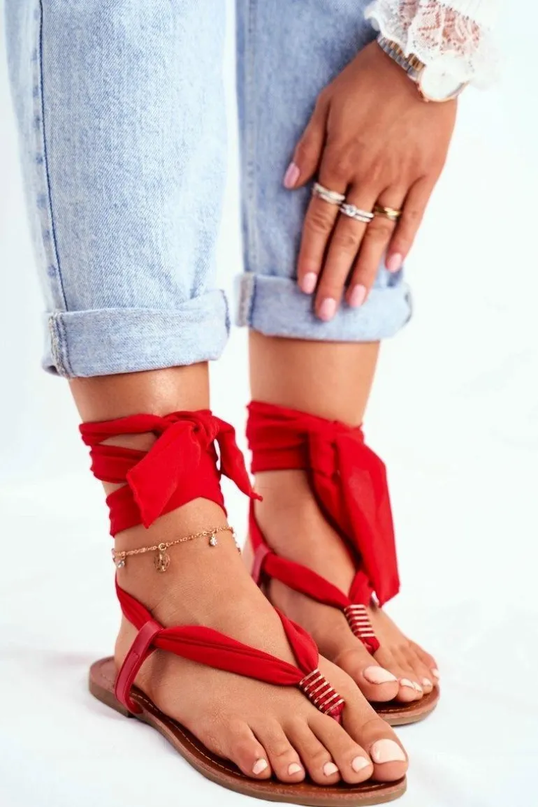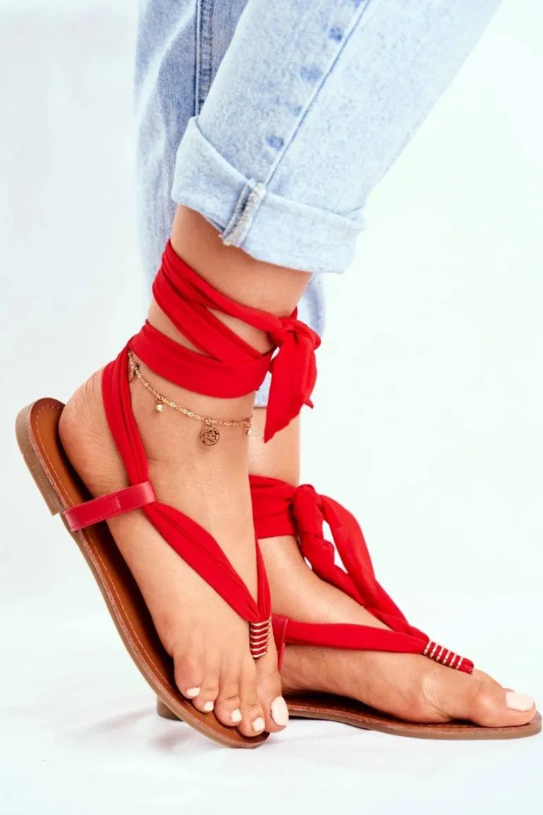 Sandałki Damskie Japonki Wiązane Czerwone Derryl