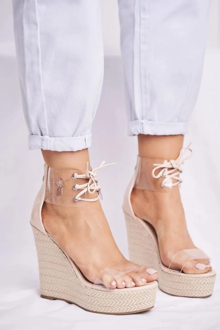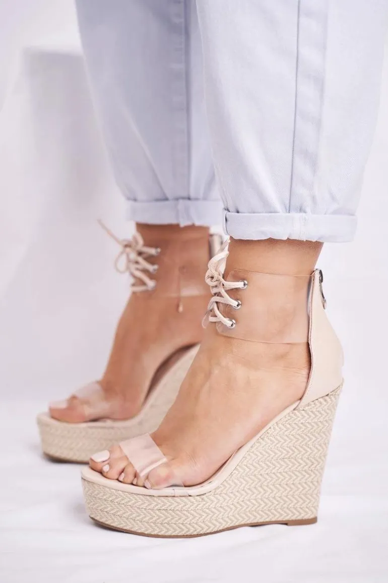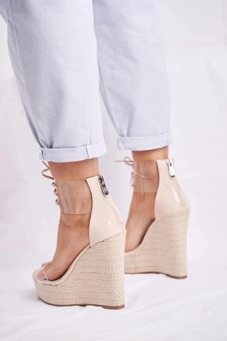 Sandałki Damskie Na Koturnie Beżowe Beautiful Way
