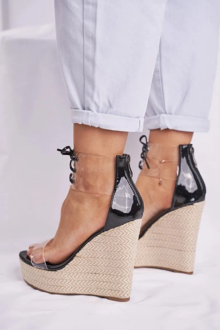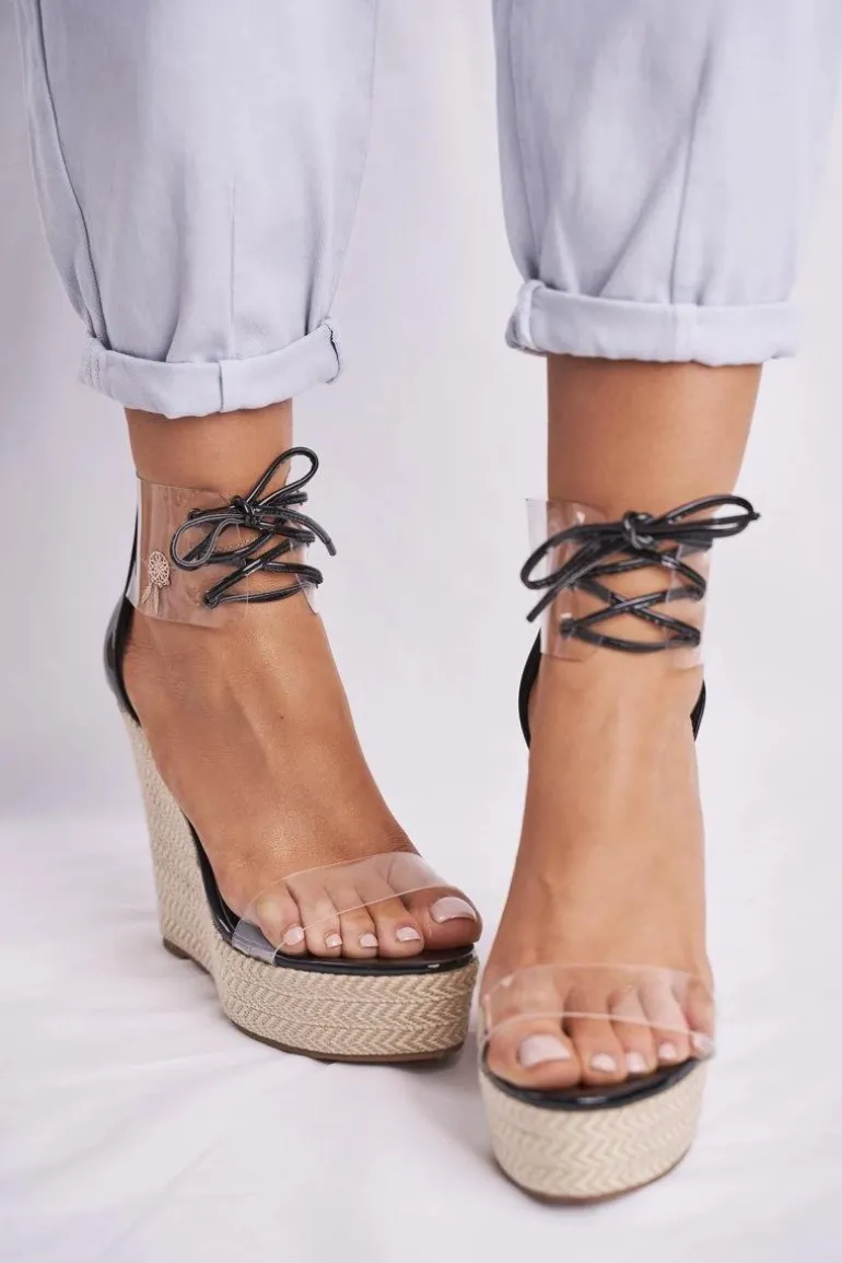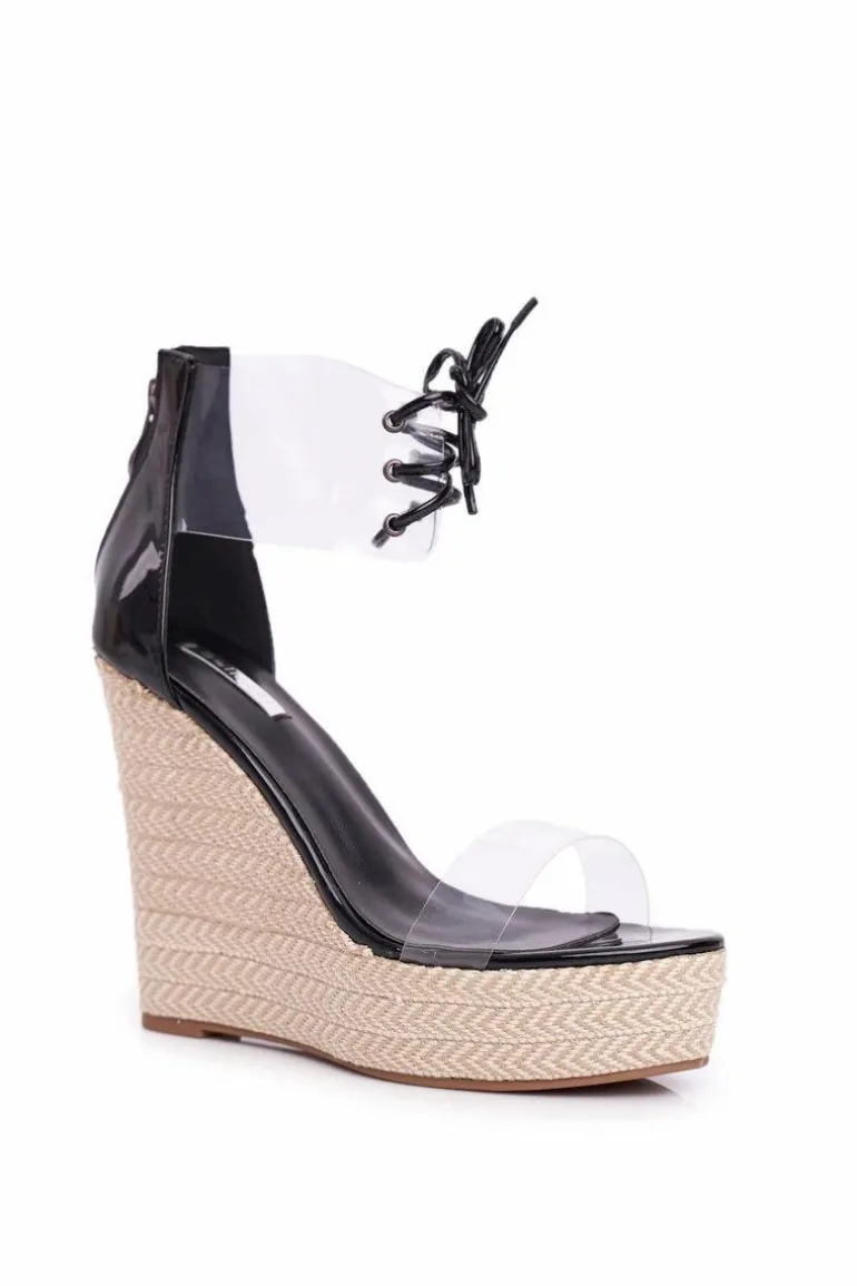 Sandałki Damskie Na Koturnie Czarne Beautiful Way
