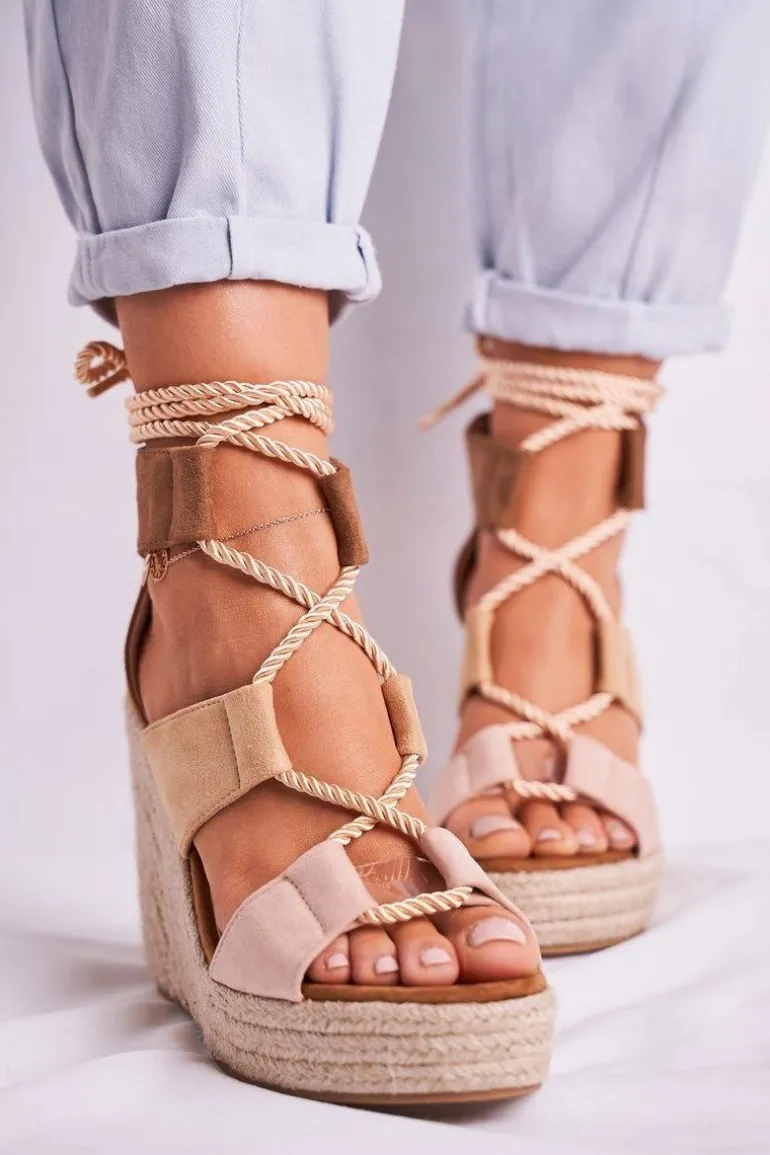 Sandałki Damskie Na Koturnie espadrylu Beżowe Beautiful One