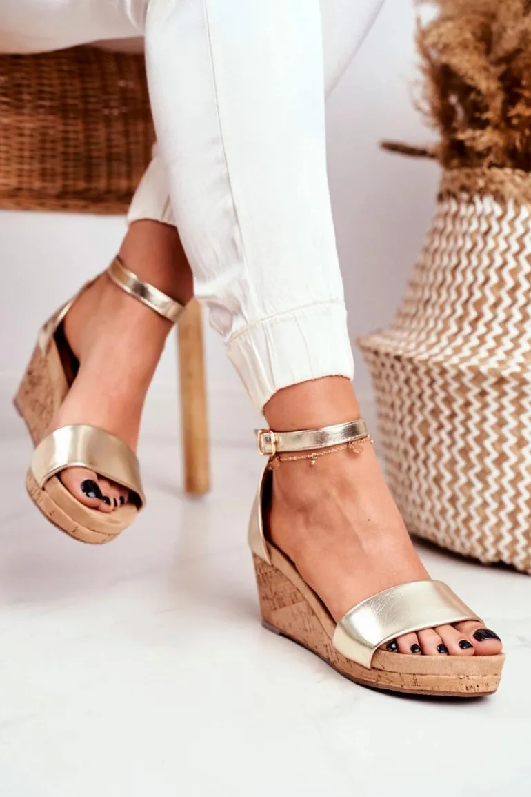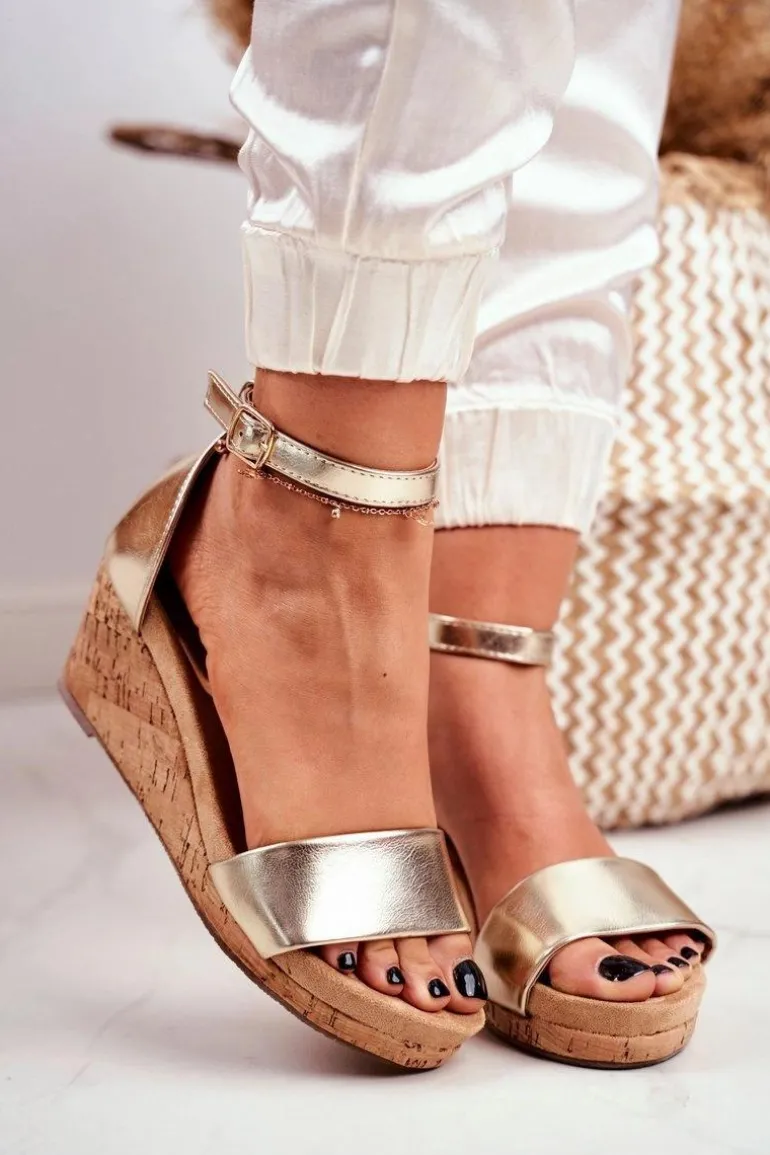 Sandałki Damskie Na Koturnie Złote MarryMe