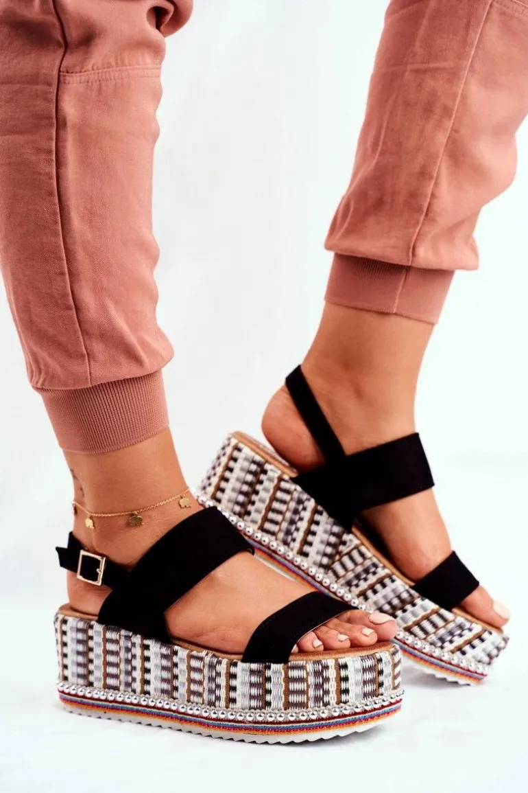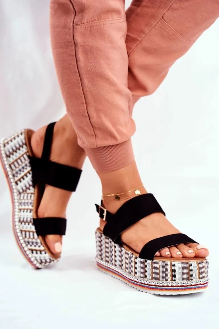 Sandałki Damskie Na Platformie Czarne Sandy