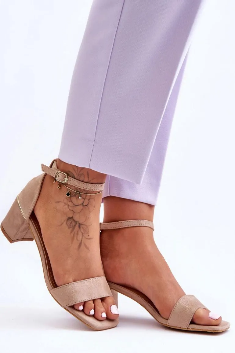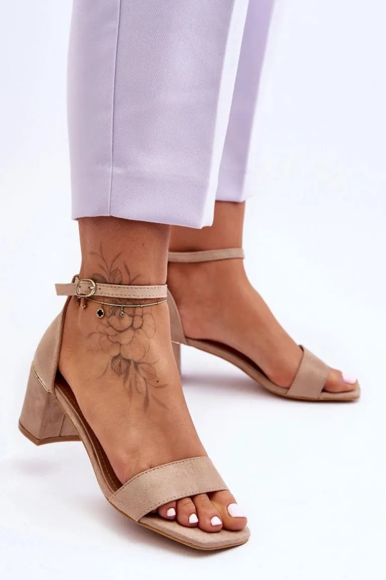 Te sandałki powinny znaleźć się w Twojej szafie! Niezwykle wygodny i przewiewny model. Zostały wykonane z eko zamszu. Posiadają odkryty, kwadratowy nosek. Osadzone na niewysokim obcasie w postaci słupka, dodatkowo ozdobionym lustrzanym elementem. Idealny model na różnego rodzaju uroczystości w upalne dni! Przy wyborze rozmiaru prosimy sugerować się tabelą rozmiarów.