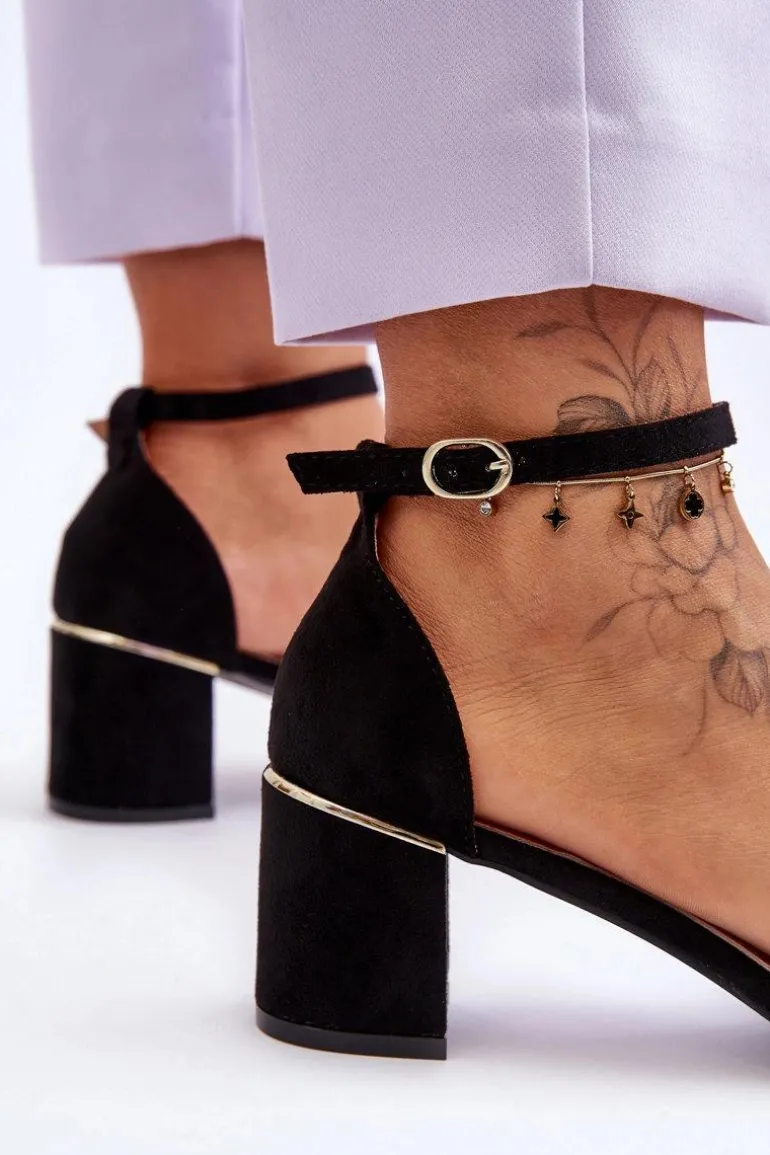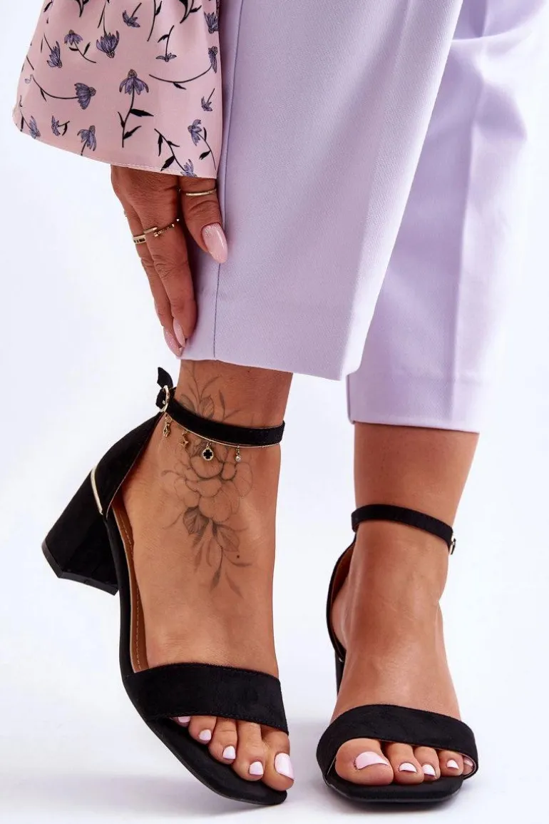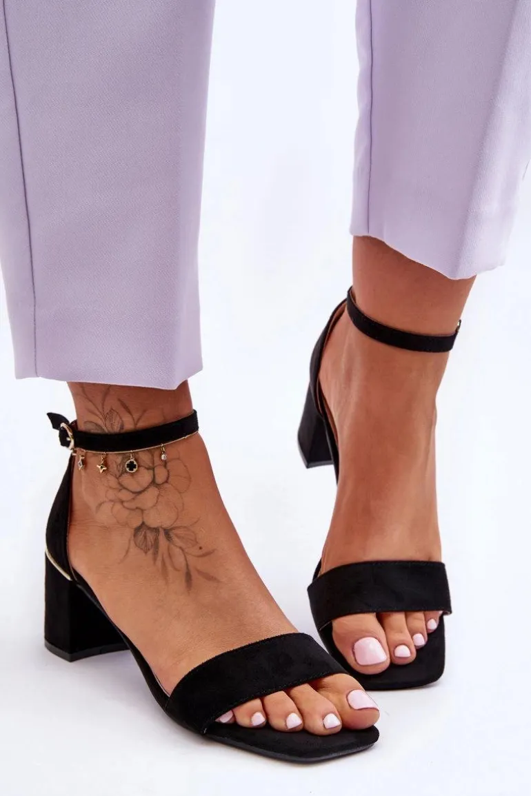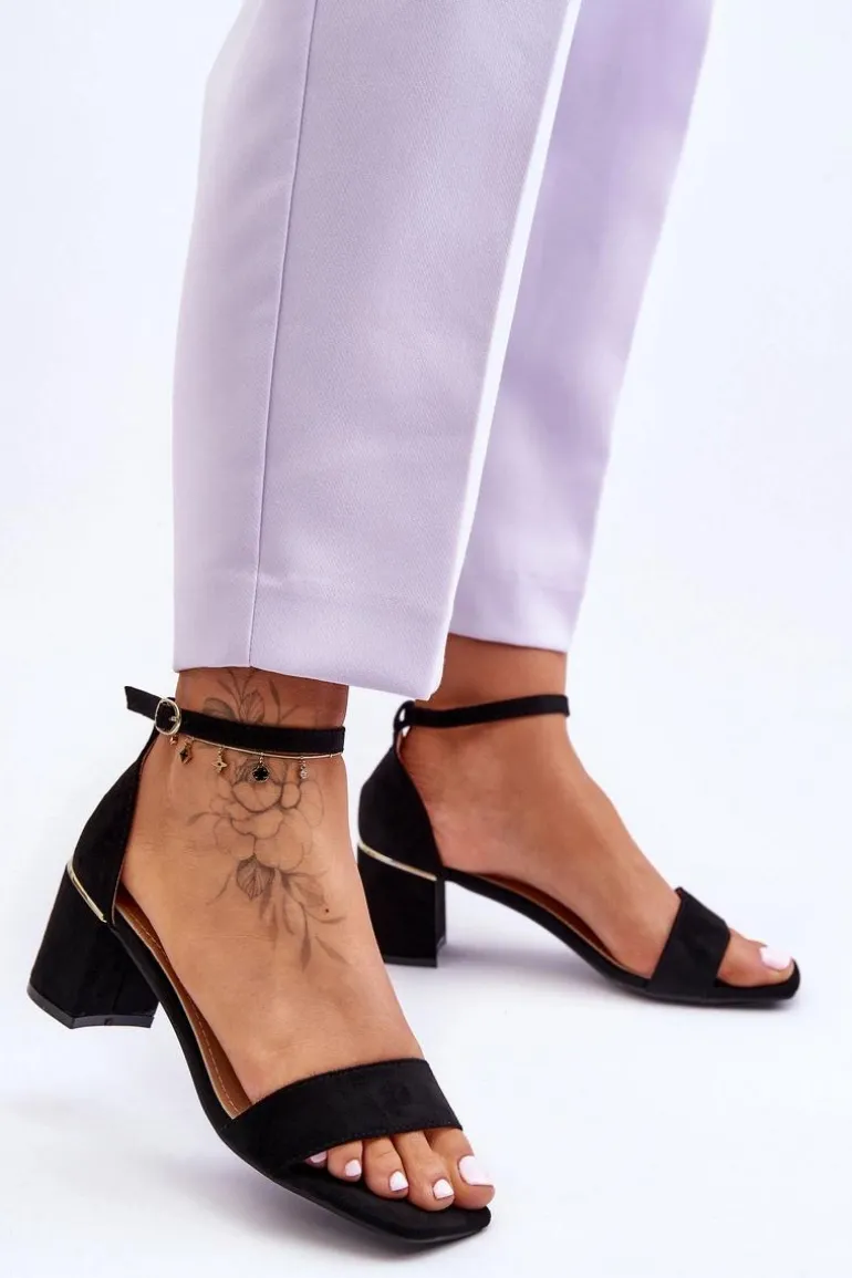 Te sandałki powinny znaleźć się w Twojej szafie! Niezwykle wygodny i przewiewny model. Zostały wykonane z eko zamszu. Posiadają odkryty, kwadratowy nosek. Osadzone na niewysokim obcasie w postaci słupka, dodatkowo ozdobionym lustrzanym elementem. Idealny model na różnego rodzaju uroczystości w upalne dni! Przy wyborze rozmiaru prosimy sugerować się tabelą rozmiarów.