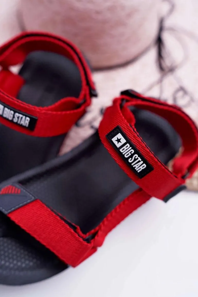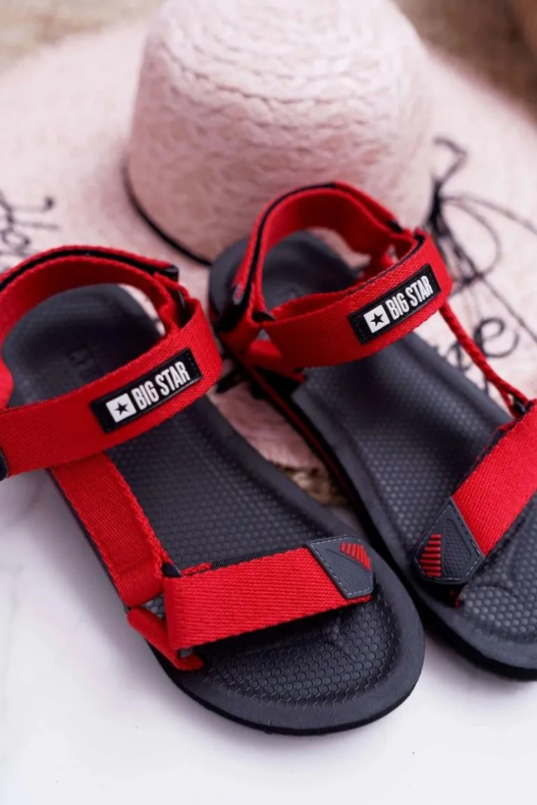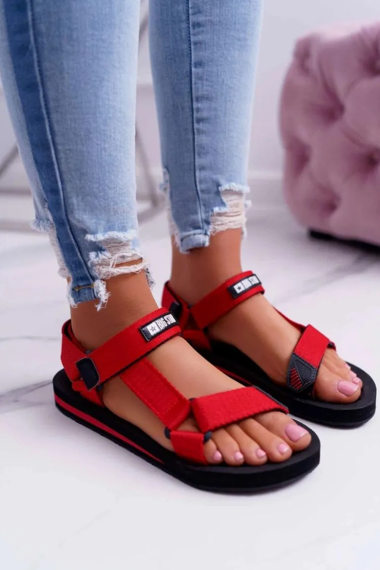 Sandały Damskie Big Star Na Rzepy Czerwone DD274A284