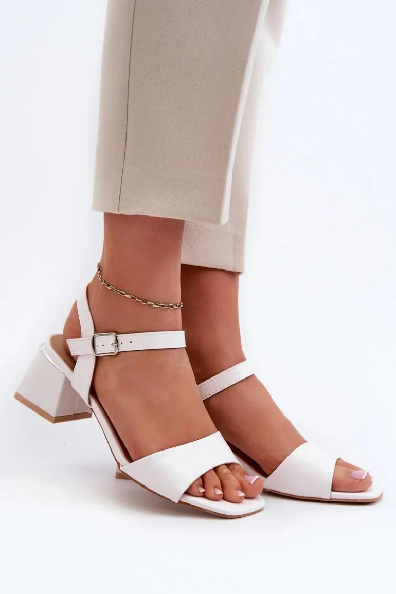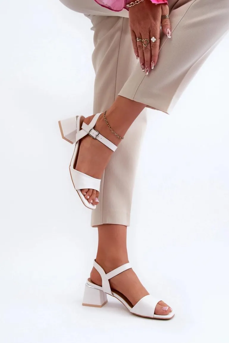 Sandały damskie wykonane z eko skóry. Obcas w postaci klocka zapewnia stabilność. Zapinane na regulowany pasek ze sprzączką, gwarantują idealne dopasowanie do stopy. Idealne do letnich sukienek! Przy wyborze rozmiaru prosimy sugerować się tabelą rozmiarów.