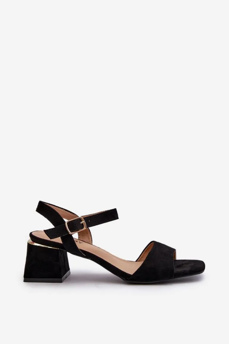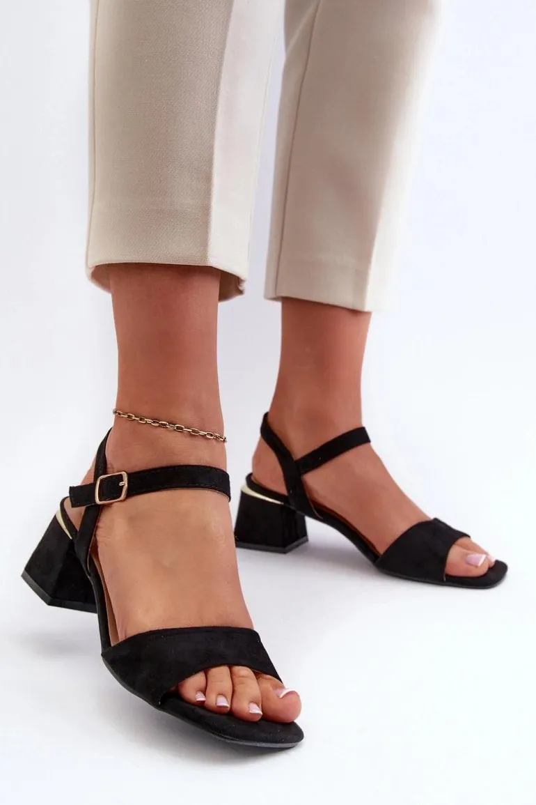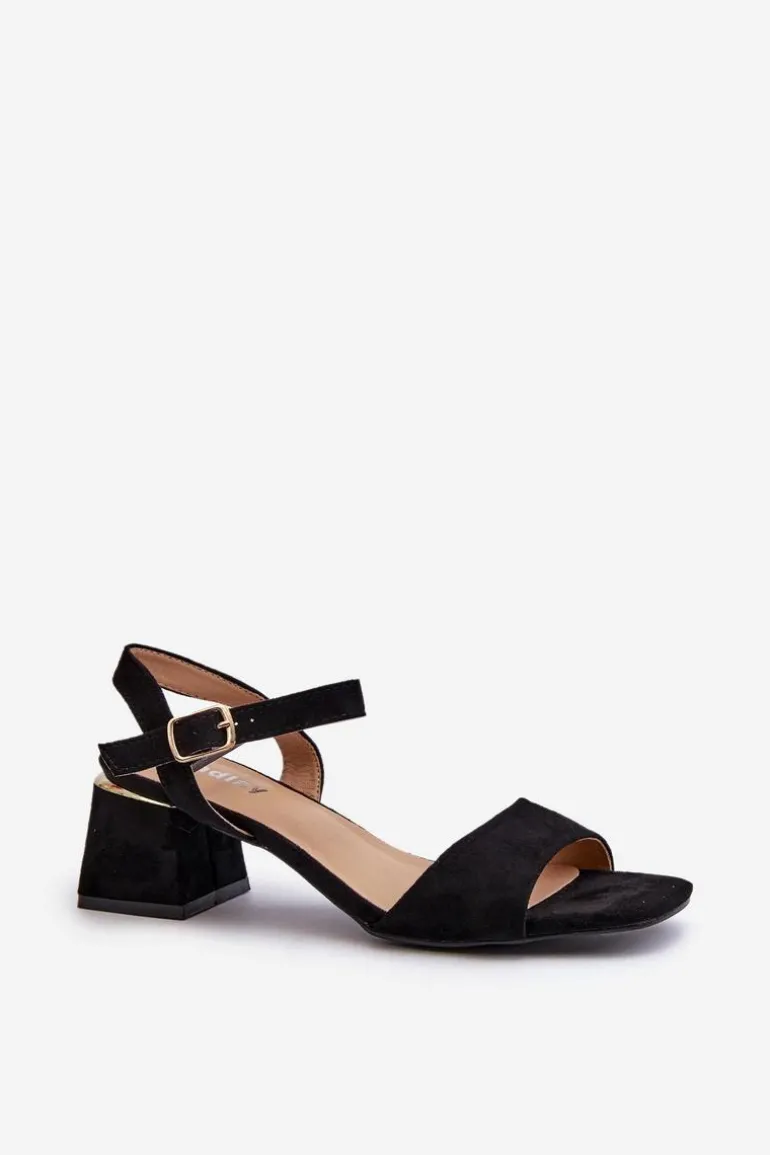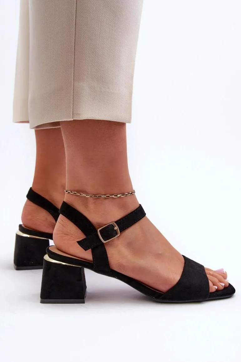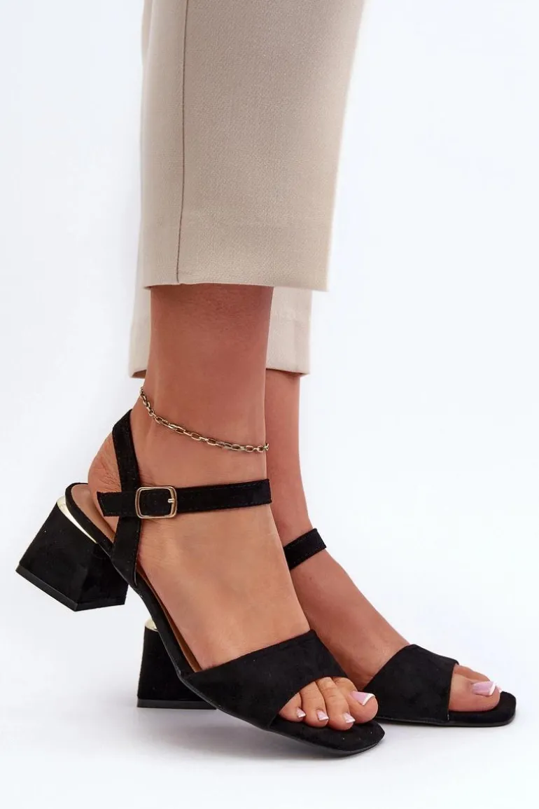 Sandały damskie wykonane z miłego w dotyku eko zamszu. Obcas w postaci klocka zapewnia stabilność. Zapinane na regulowany pasek ze sprzączką, gwarantują idealne dopasowanie do stopy. Idealne do letnich sukienek! Przy wyborze rozmiaru prosimy sugerować się tabelą rozmiarów.