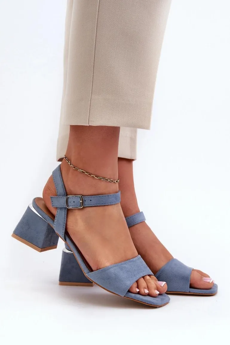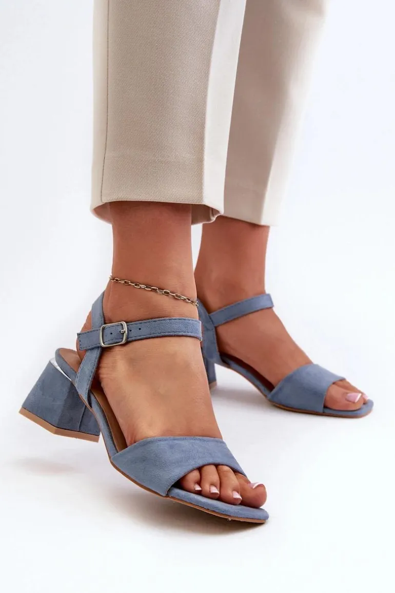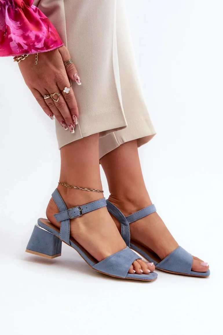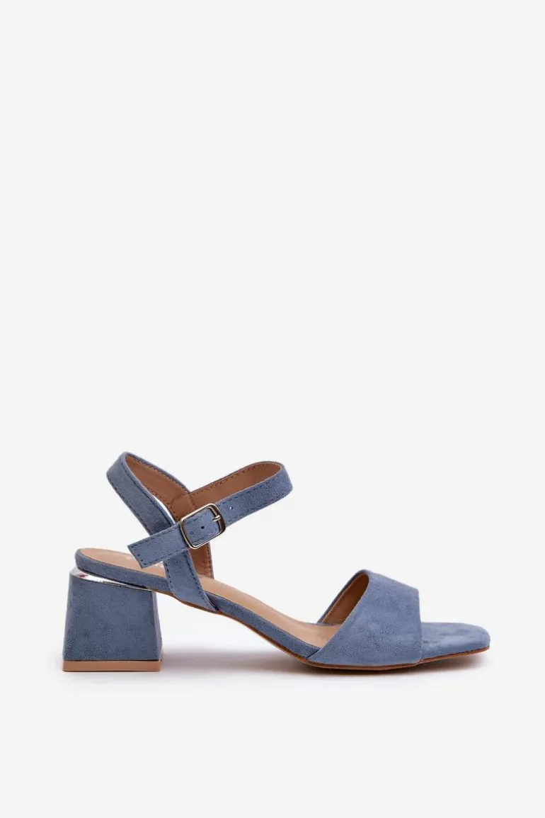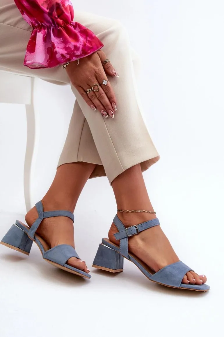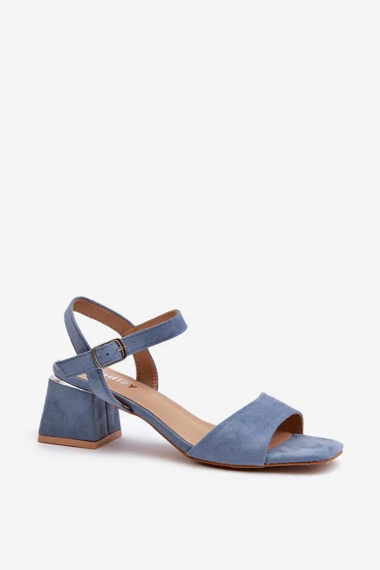 Sandały Damskie Na Klocku Z Eko Zamszu Niebieskie Leisha